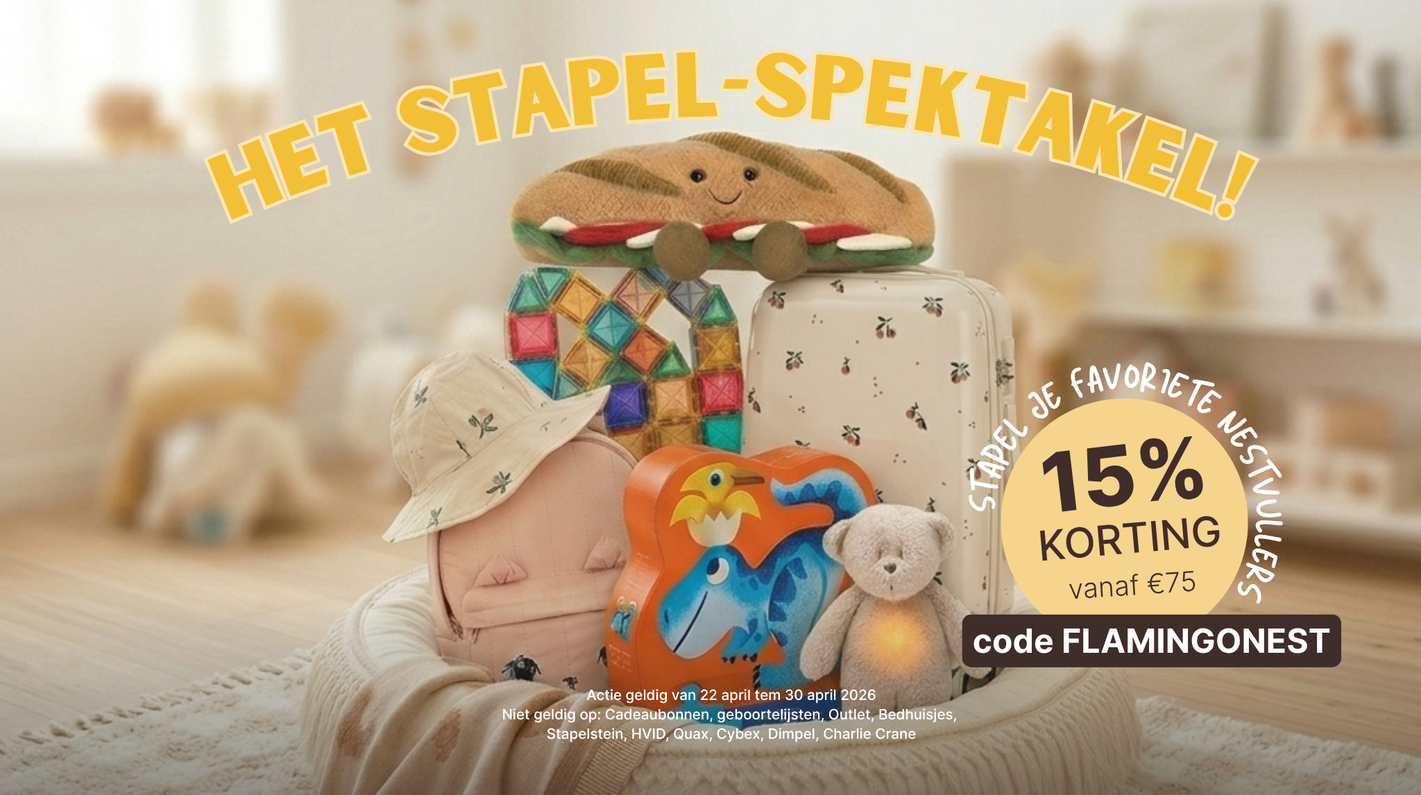 Stapelkorting: 15% korting vanaf €75 met code: FLAMINGONEST