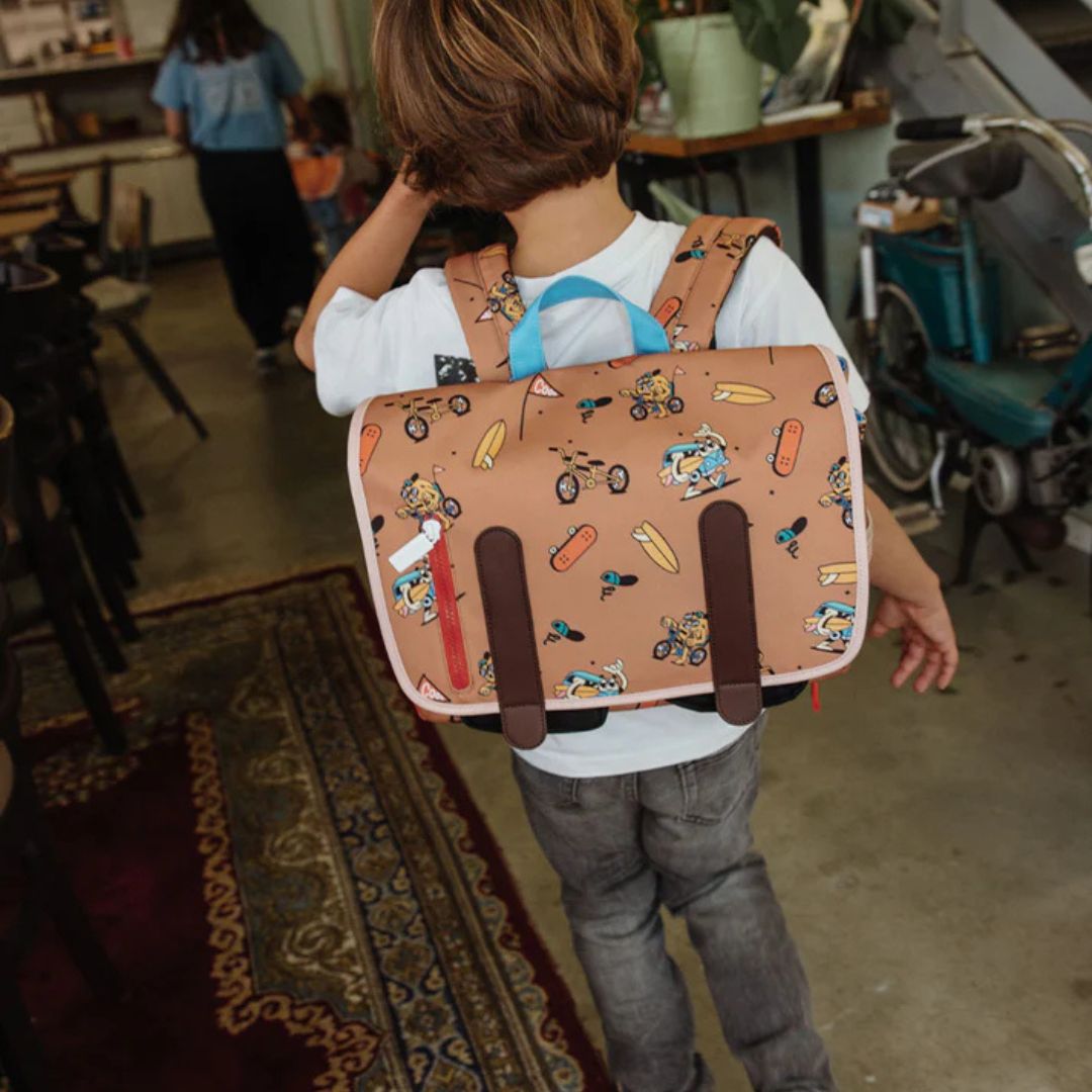Kies een waterafstotend model dat makkelijk opent en sluit — ideaal zijn de exemplaren van Jeune Premier, Trixie of Fresk. Extra leuk: je kan de tas matchen met de boekentas én drinkfles.