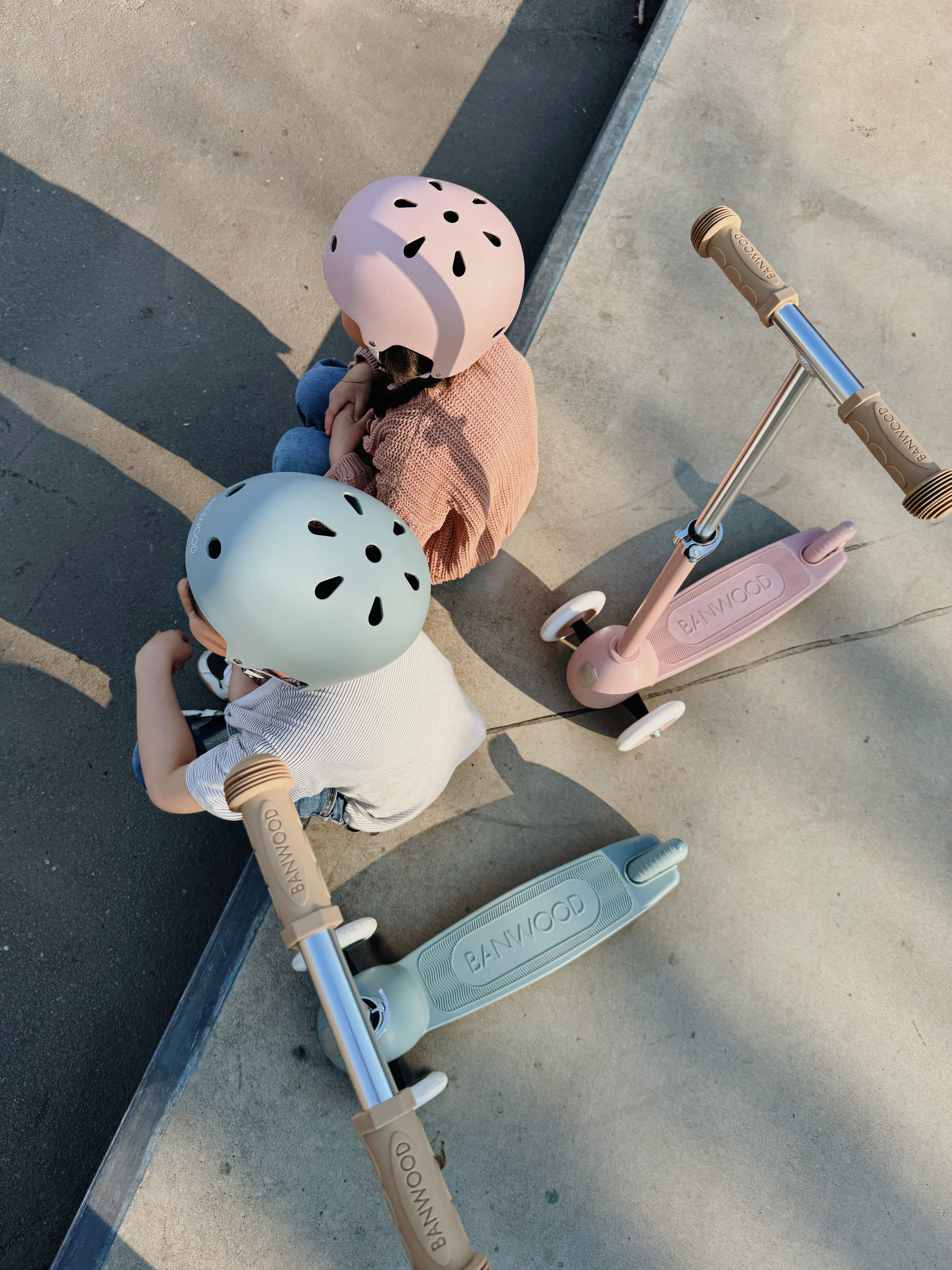 Helemaal nieuw is de ECO line step à €89. Super mooie pastel kleuren met bijpassende helmen.