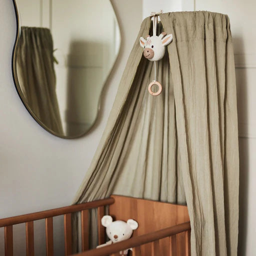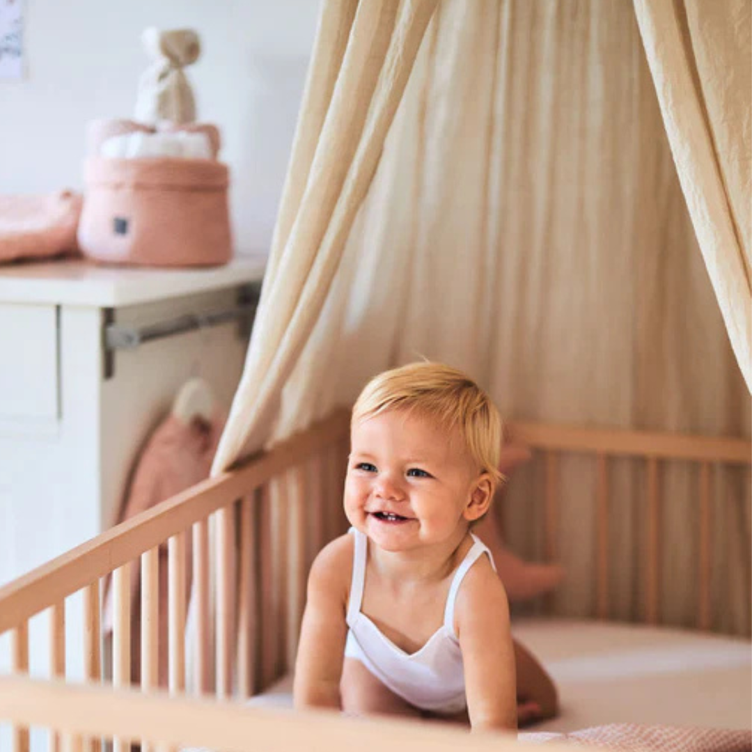 Naast sprays en stickers is een klamboe boven het bedje ook een goede oplossing. Hang er eentje boven het bedje en geef muggen geen kans om toe te slaan! Op de foto's in zie je de mooie klamboes van onder andere Nobodinoz en Jollein – stijlvol én functioneel!