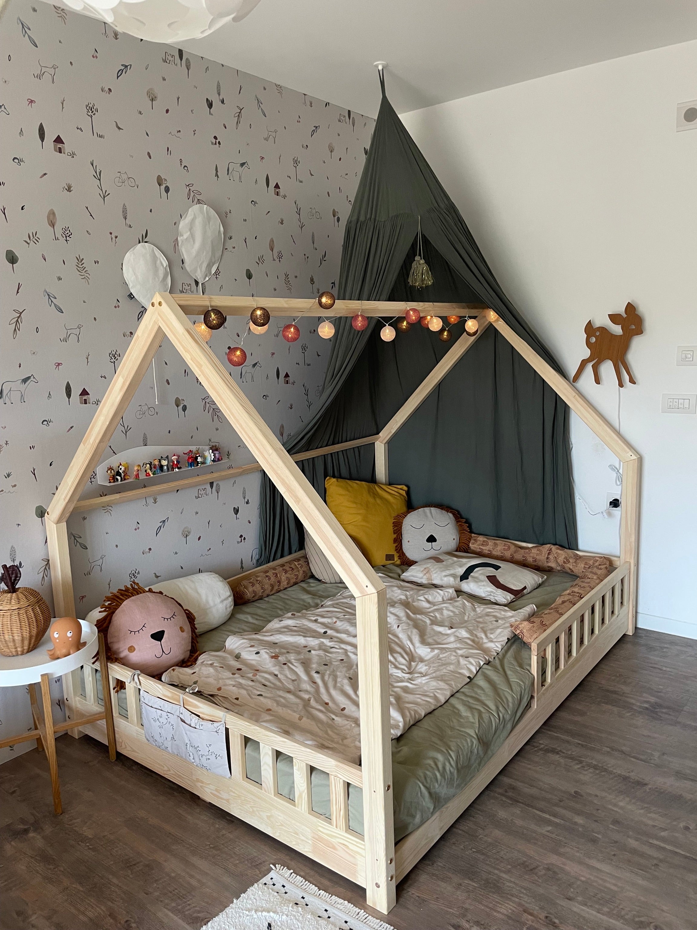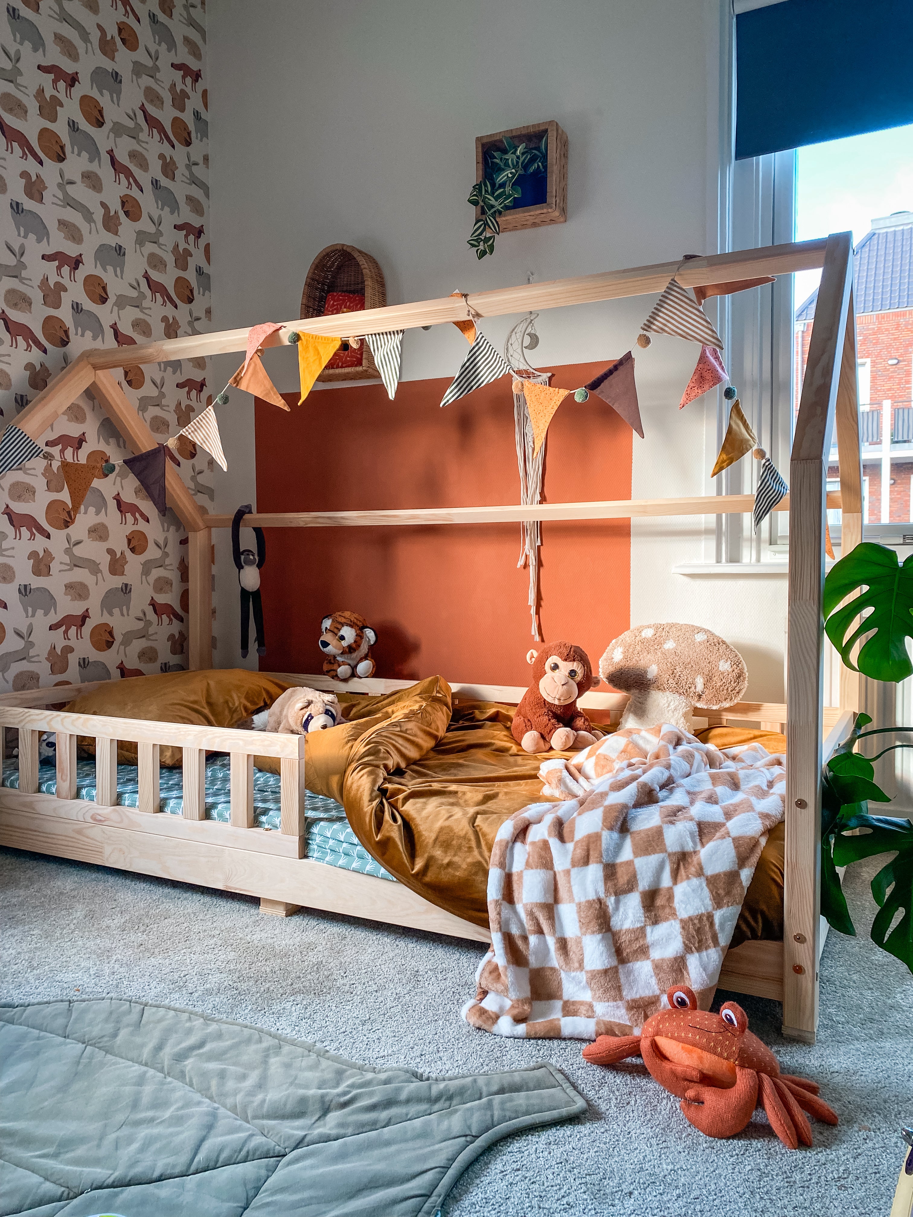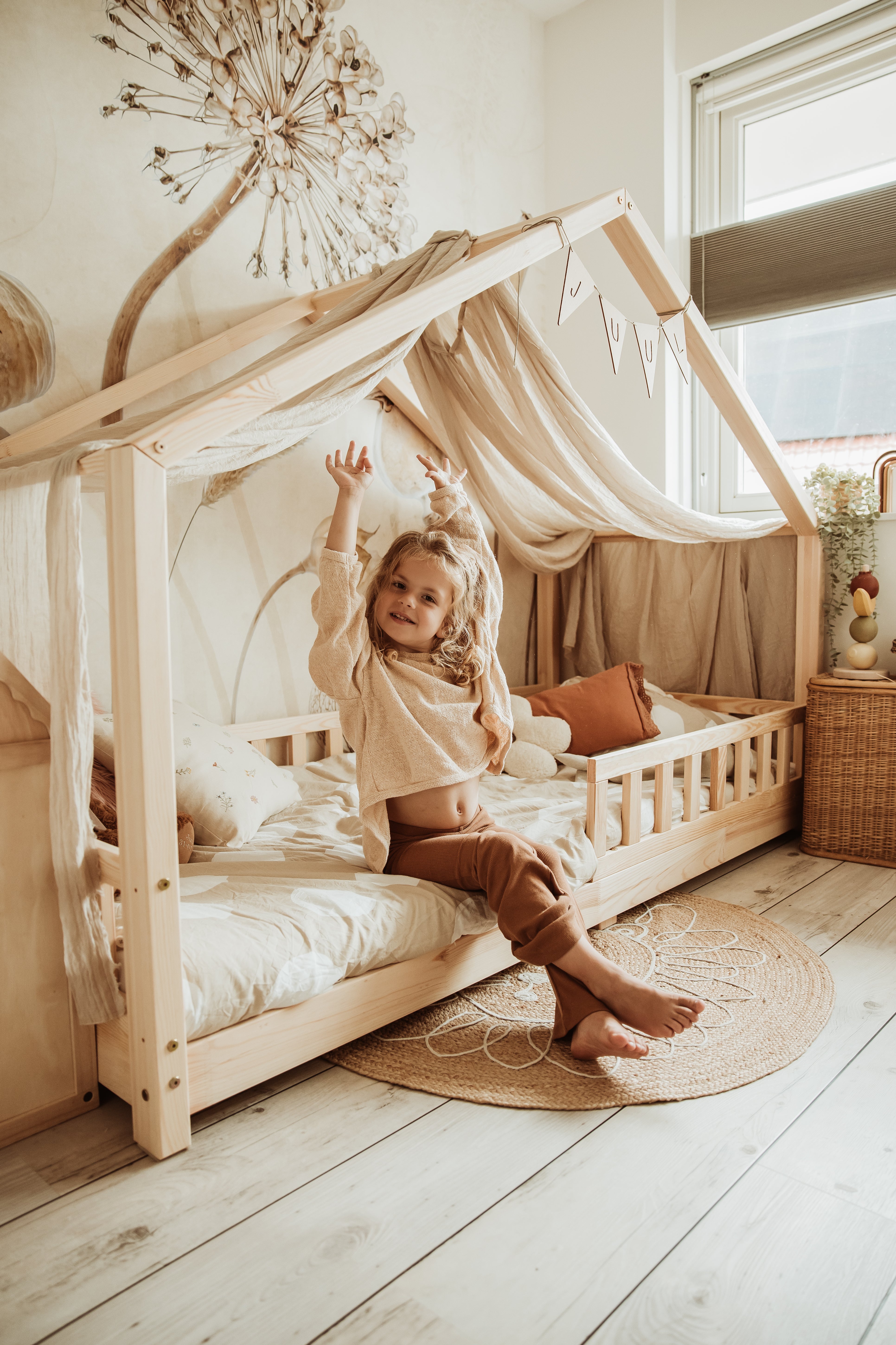 Ons bedhuisje is uniek, super stevig en je kleine en grote kids voelen zich ter meteen in thuis. De opstap van het bedhuisje is erg laag, daarom is het al geschikt voor kindjes vanaf 2,5 jaar. Het is een bedhuisje met uitvalbeveiliging. Je kiest zelf of je deze graag links of rechts monteert en haal je er achteraf eenvoudig en snel terug af. Ook is er voldoende ruimte onder het bedje voor ventilatie. De bedhuisjes bestaan er in een eenpersoons en tweepersoons versie.