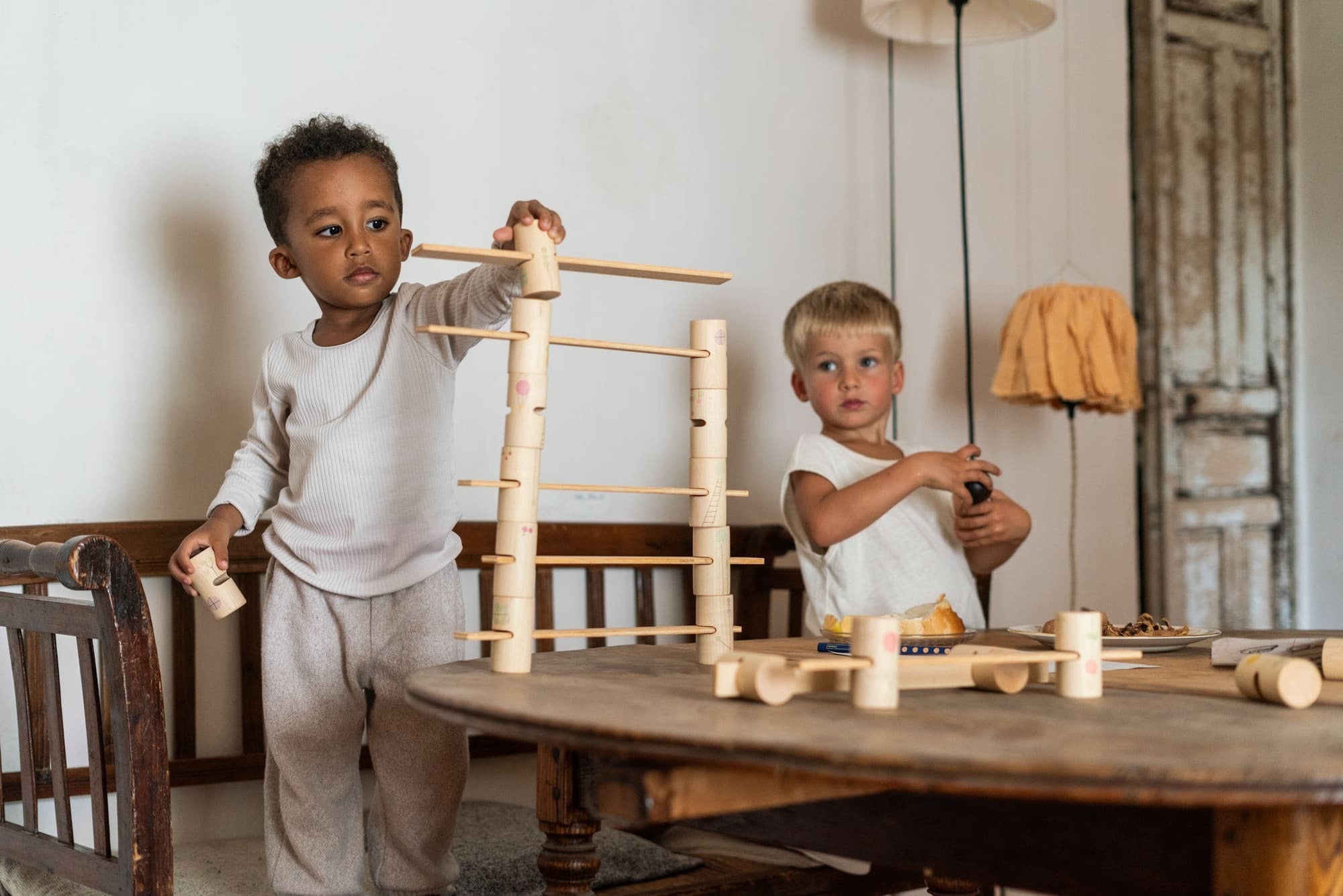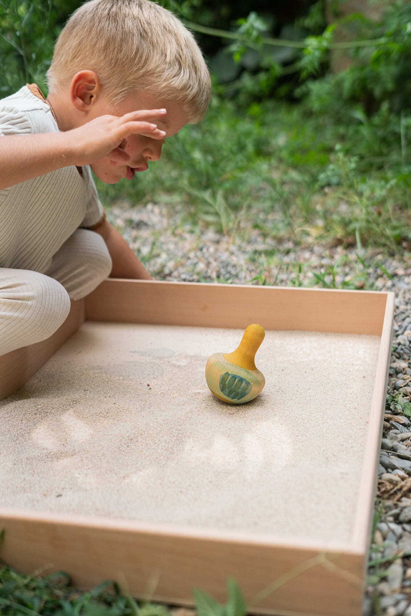 De houten onderdelen worden gemaakt van duurzaam beuken- en berkenhout. Daarna wordt het gebeitst met natuurlijke verfstoffen en afgewerkt met plantaardige oliën wat het 100% veilig maakt voor kinderen en milieu.