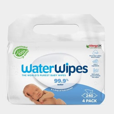 Dit is 99,9% water en een druppeltje fruitextract als natuurlijke huidconditioner. Op deze manier zijn de waterwipes babydoekjes zuiverder dan watten en water.