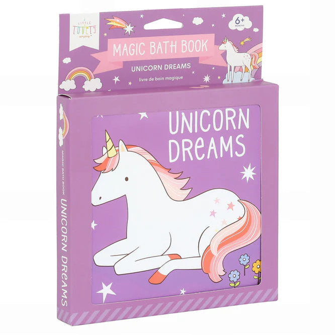 Dit babyboekje met schattige eenhoorn vrienden heeft een fijn formaat voor kleine kinderhandjes en is het ideale badspeeltje: zacht, waterdicht en vol dromerige afbeeldingen!