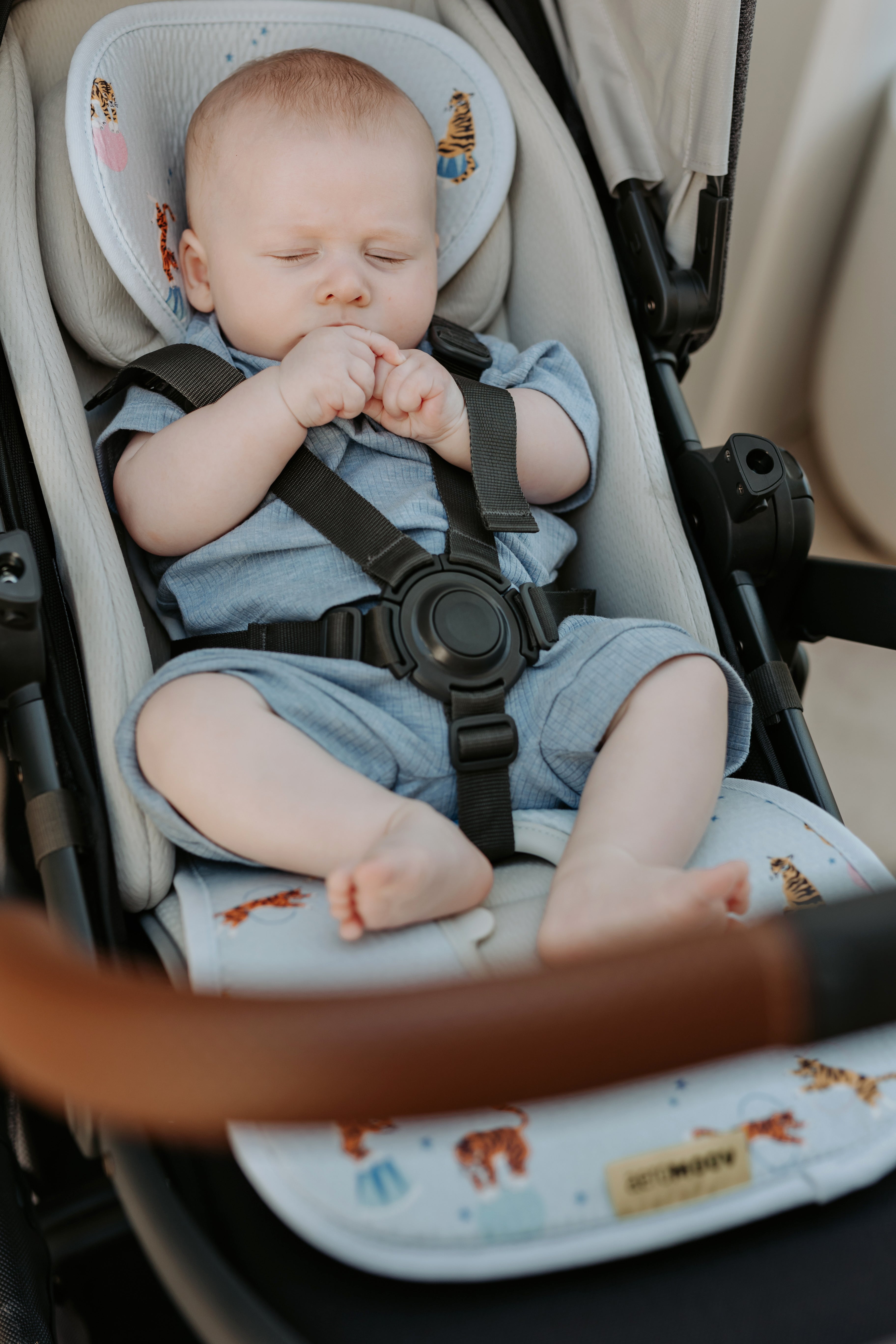 De Aeromoov past in elke buggy met een 3-punts of 5-puntsgordel.
