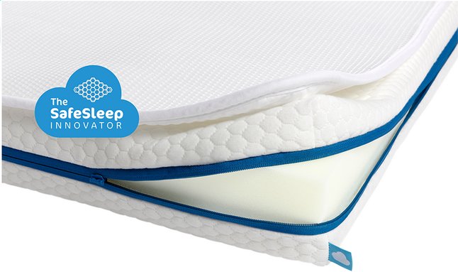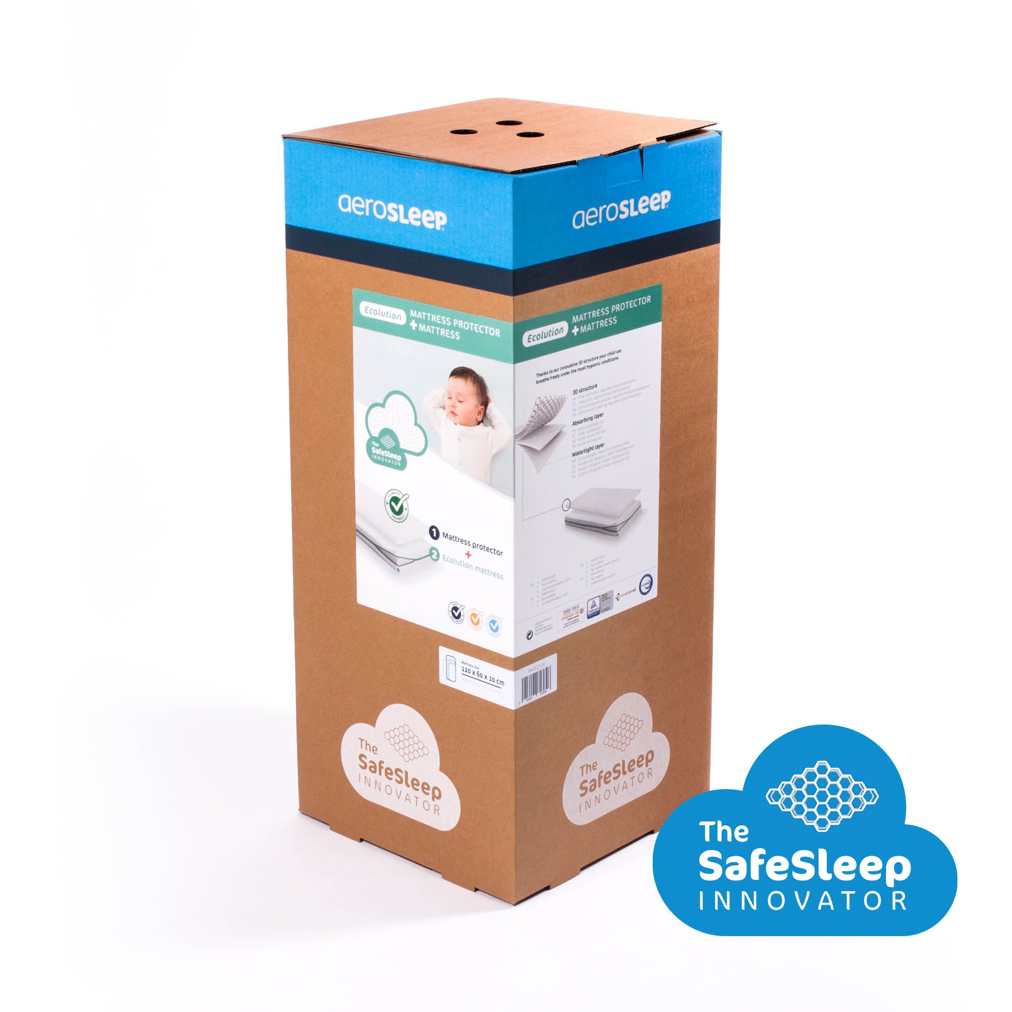 De AeroSleep matrasbeschermer is afneembaar en is zo ontwikkeld dat je baby'tje altijd kan blijven ademen, ook als het op z'n buikje terechtkomt. Hoe? Dankzij de speciaal uitgekiende 3D-honingraatstructuur waarbij de baby op een luchtlaagje ligt. Datzelfde luchtlaagje reguleert ook je baby's temperatuur en beschermt tegen oververhitting.