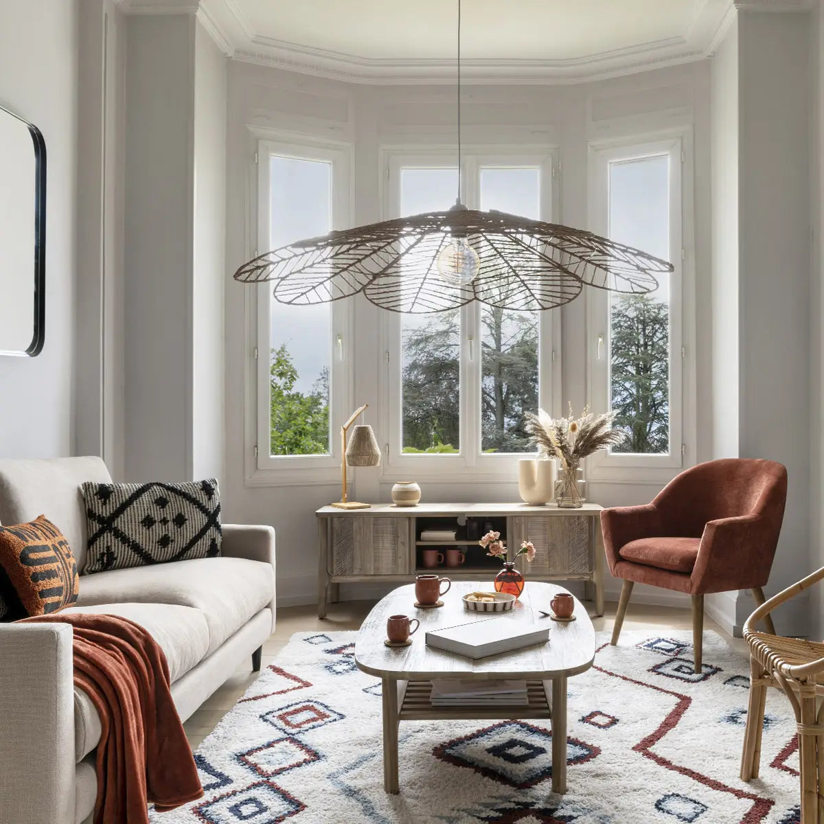 Wat een uniek exemplaar is deze gave lampenkap van Atmosphera! Gemaakt van duurzaam gevlochten rotan in de kleur naturel bruin.