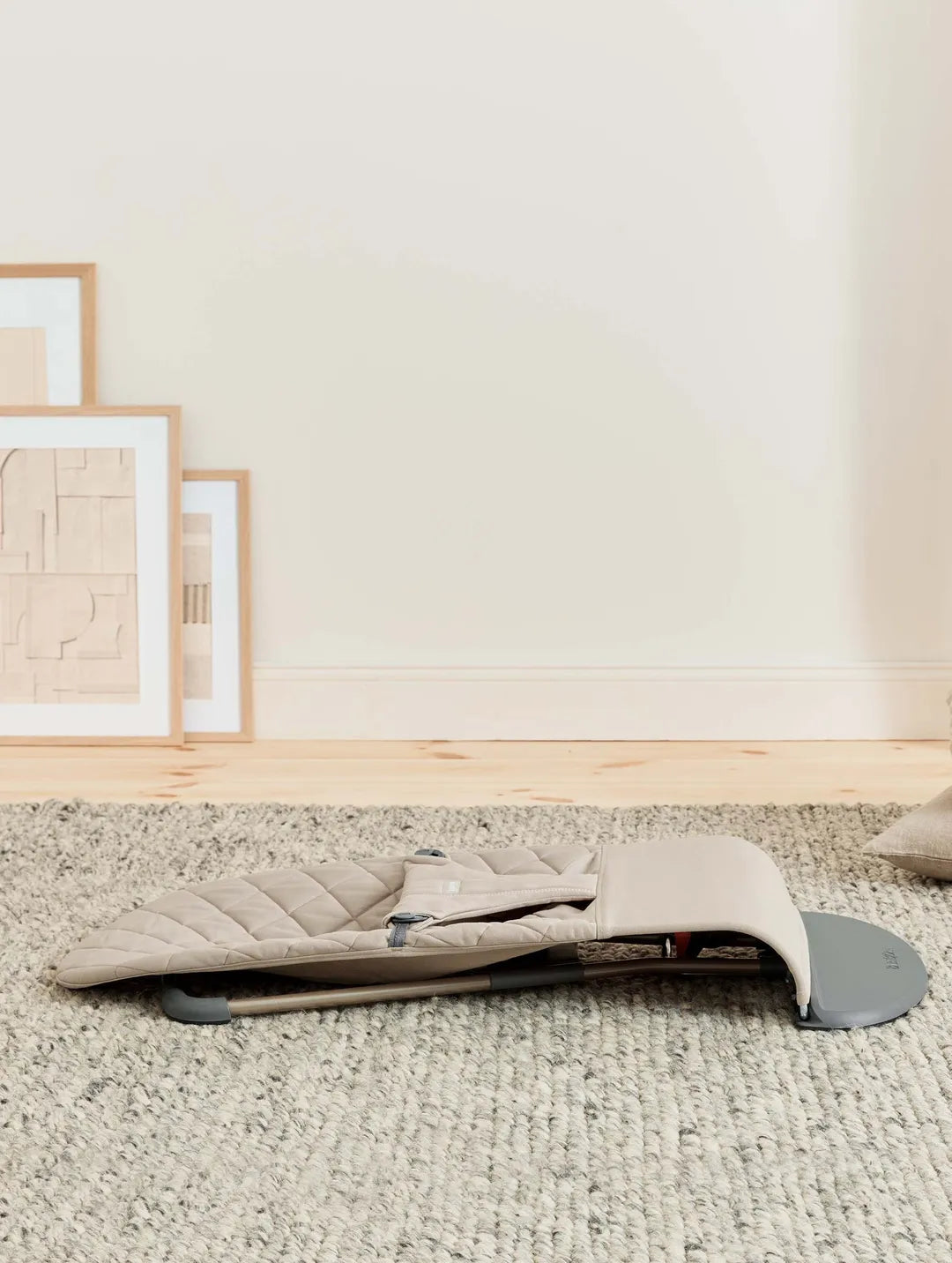 De wipstoel is de klassieke wipstoel met een nieuw en modern design. De grijze bodemplaat en het frame geven een zachtere indruk en de effen stof geeft een gevoel van luxe. De nieuwe wipstoel past goed bij elke inrichting. Met de wipstoel kan je kindje slapen of spelen, terwijl je als ouder bijvoorbeeld een lekkere maaltijd kookt.