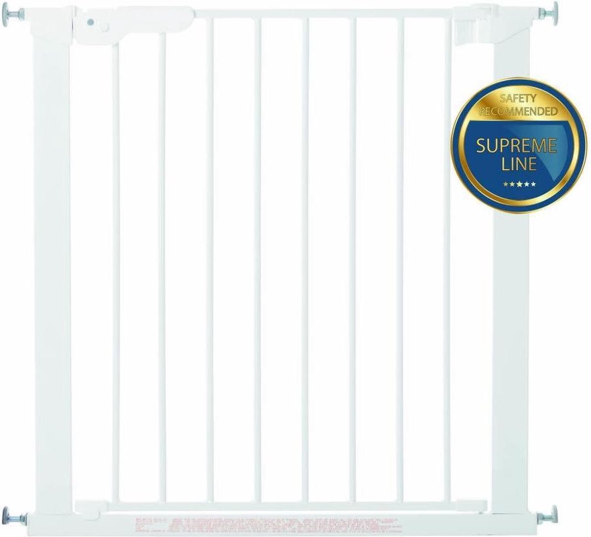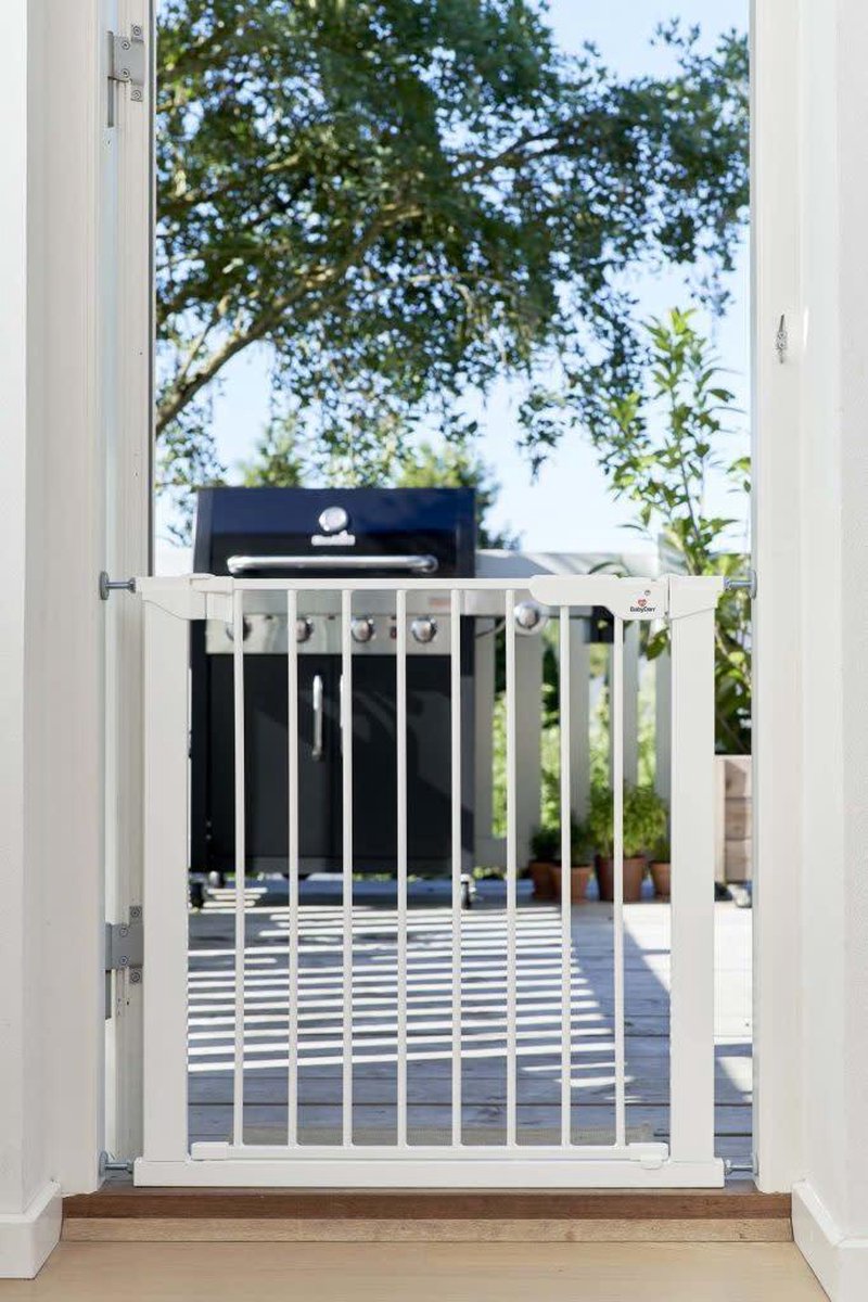 Metalen deurhekje met klemsysteem, inclusief 2 verlengstukken. Geschikt voor deuropeningen van 73,5 tot 79,6 cm (zonder verlengstukken) en tot 93,3 cm (met 2 verlengstukken). Je kan dit nog verder uitbreiden met extra verlengstukken, apart aan te kopen.