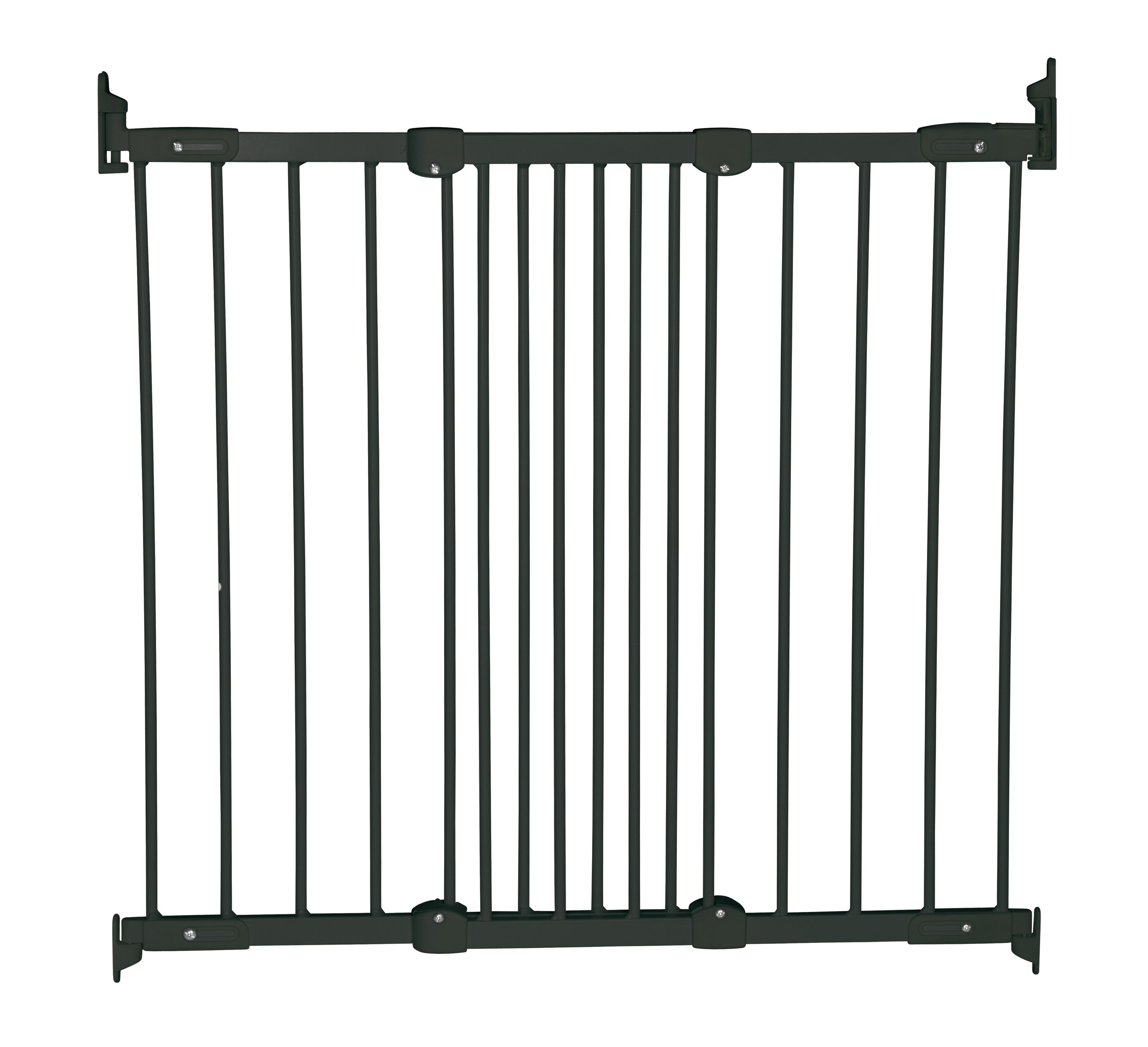 Metalen deurhekje met schroefsysteem voor deuropeningen van 67 tot 105,5cm (montage binnenkant) en tot 100,5cm (montage buitenkant). Geen verlengstukken nodig dankzij het uitschuifsysteem. Hoogte: 74cm. Kan langs beide zijden worden geopend. Gemakkelijk met één hand te openen.