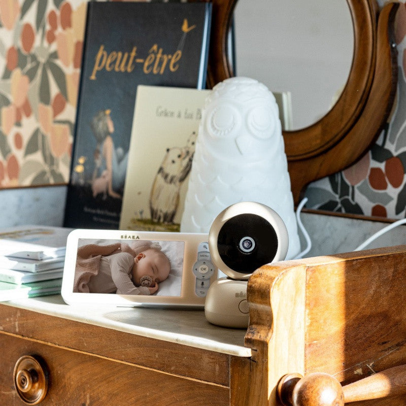 Met de Béaba Babyfoon Video Zen Premium Clay hou je je baby altijd veilig in de gaten, zowel thuis als onderweg. Deze premium video babyfoon combineert een 360° draaibare camera, haarscherp HD-beeld en slimme functies zodat je altijd gerust kan zijn terwijl je kindje slaapt.