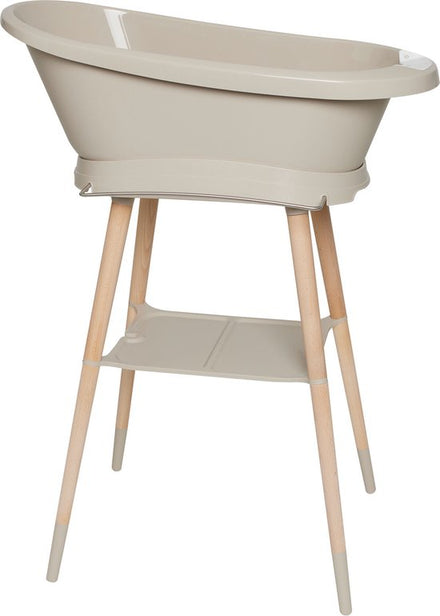 De badstandaard heeft dankzij de FSC houten poten een luxe uitstraling en is dus niet alleen praktisch, maar staat ook nog eens heel mooi in de kamer. Aan de voorkant van de badstandaard zit een handdoekenrekje en het ruime kunststof plateau geeft plaats aan bijvoorbeeld een shampooflesje, washandje(s) of wasgel.