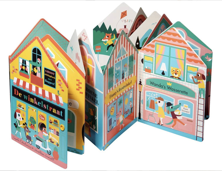 Ga samen met je kleine flamingo shoppen in de leukste winkelstraat ooit! Ontdek bij elke winkel wat er achter het flapje zit en klap het boek helemaal uit tot een supergrote winkelstraat. Op de achterkant staat een wondermooi park waar jullie samen even tot rust kunnen komen.
