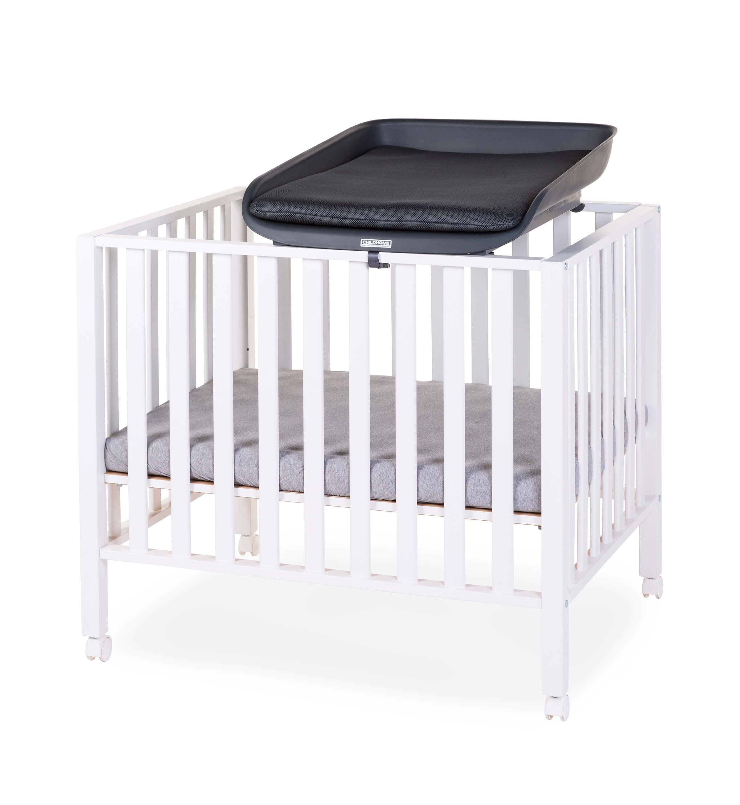 De Evolux verzorgingsunit helpt je luiers te verversen op een veilige manier. Deze verzorgingsunit plaat je met het grote metalen frame makkelijk over babybedjes, wiegjes en parken.