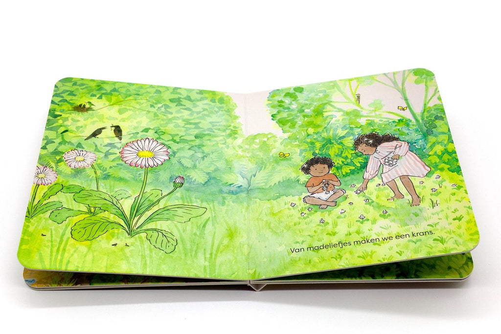 Geniet van de lente met dit prachtige kartonboekje. Ontdek de schatten die de natuur in dit seizoen te bieden heeft. Een juweeltje voor kleine natuurliefhebbers die graag buiten zijn. Vanaf 1 jaar.