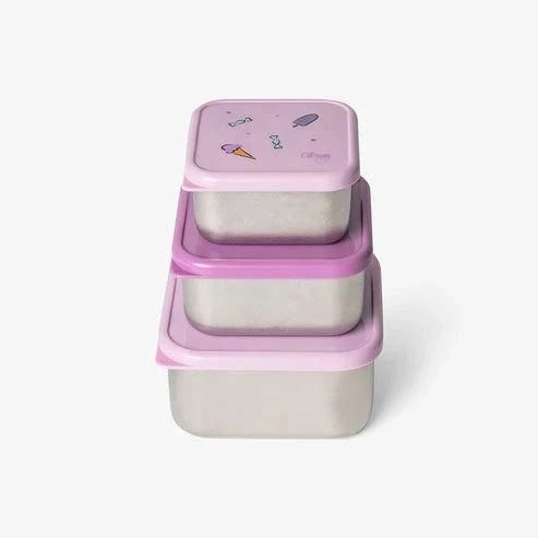 Handige set van drie lunchdoosjes/snackdoosjes. Afhankelijk van de grootte kan je deze gebruiken als brooddoos en de iets kleinere als snackdoosje! Handig! Deze passen perfect in elkaar.