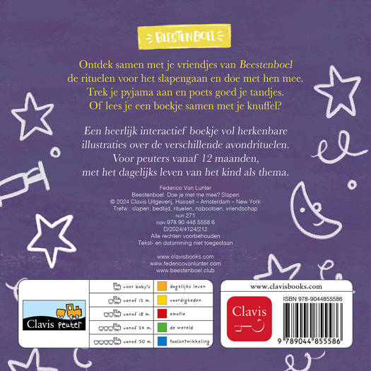 Ontdek samen met je vriendjes van Beestenboel de rituelen voor het slapengaan en doe met hen mee. Trek je pyjama aan en poets goed je tandjes. Of lees je een boekje samen met je knuffel? Met dit interactief boekje Een heerlijk interactief bekijk je herkenbare illustraties over de verschillende avondrituelen. Voor peuters vanaf 12 maanden, met het dagelijks leven van het kind als thema.