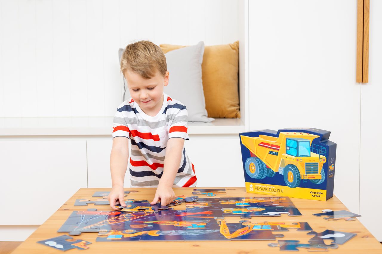 Magische vloerpuzzel van Crocodile Creek. Deze puzzel bestaat uit 36 grote puzzelstukken van gelamineerd karton en wordt geleverd in een toffe doos.