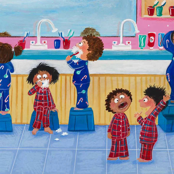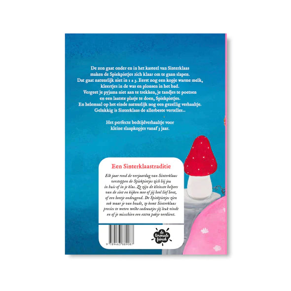 De zon gaat onder en in het kasteel van Sinterklaas maken de Spiekpietjes zich klaar om te gaan slapen. Dat gaat natuurlijk niet in 1 2 3 . Eerst nog een kopje warme melk, kleertjes in de was en plonsen in het bad. Vergeet je pyjama niet aan te trekken, je tandjes te poetsen en een laatste plasje te doen, spiekpietjes.