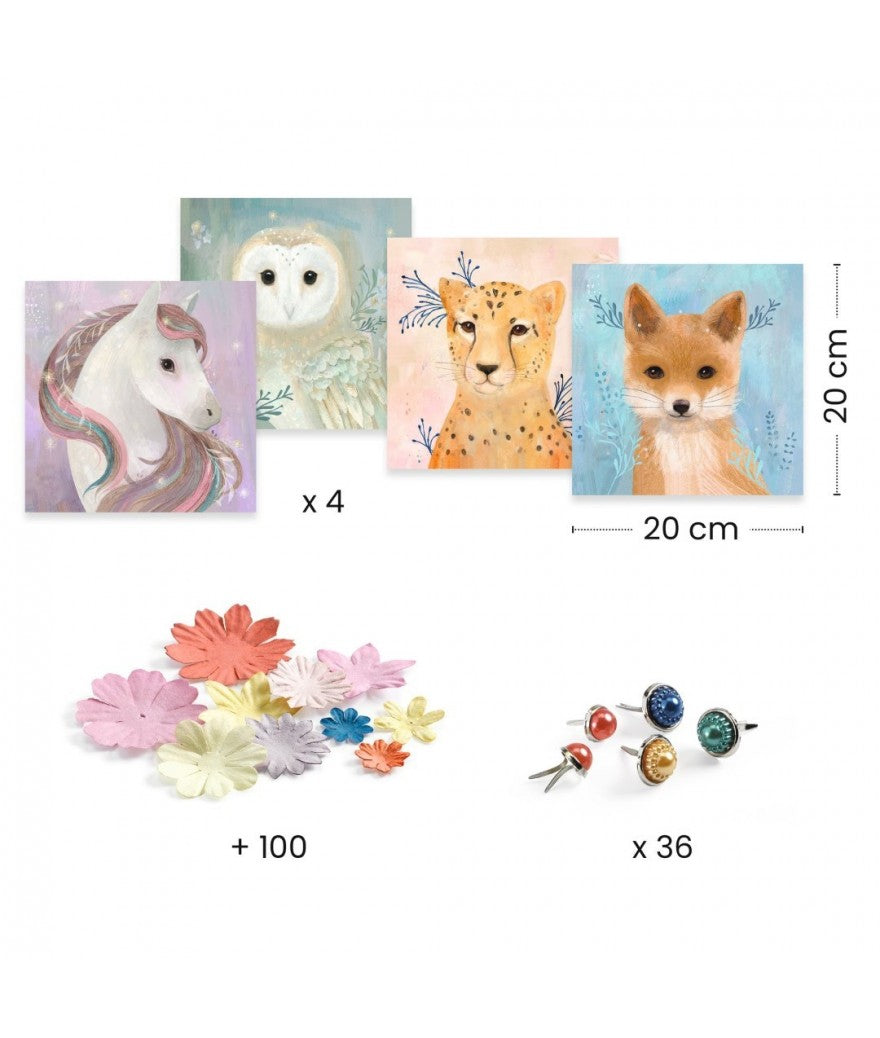 Met dit pakket van Djeco knutsel je er op los! Knutsel de mooiste bloemenkronen op de leuke dierenplaten die bij deze knutselset geleverd worden.