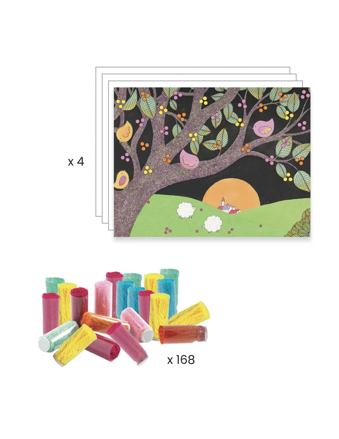 • 168 zelfklevende buisjes waaruit pompons tevoorschijn komen