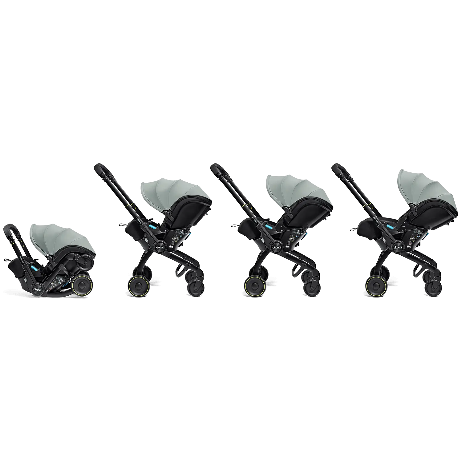 De geïntegreerde wielen zorgen ervoor dat je in minder dan 10 seconden je spruitje uit de wagen kan halen en wandelend op pad kan gaan.