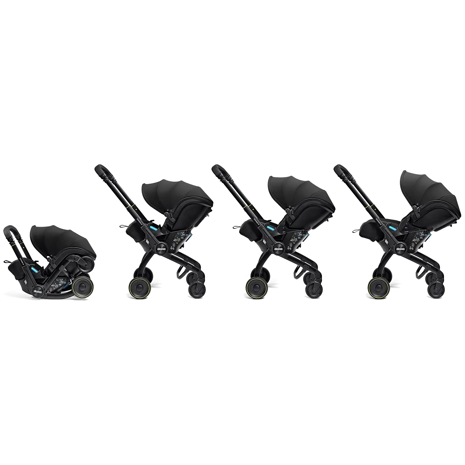 De geïntegreerde wielen zorgen ervoor dat je in minder dan 10 seconden je spruitje uit de wagen kan halen en wandelend op pad kan gaan.