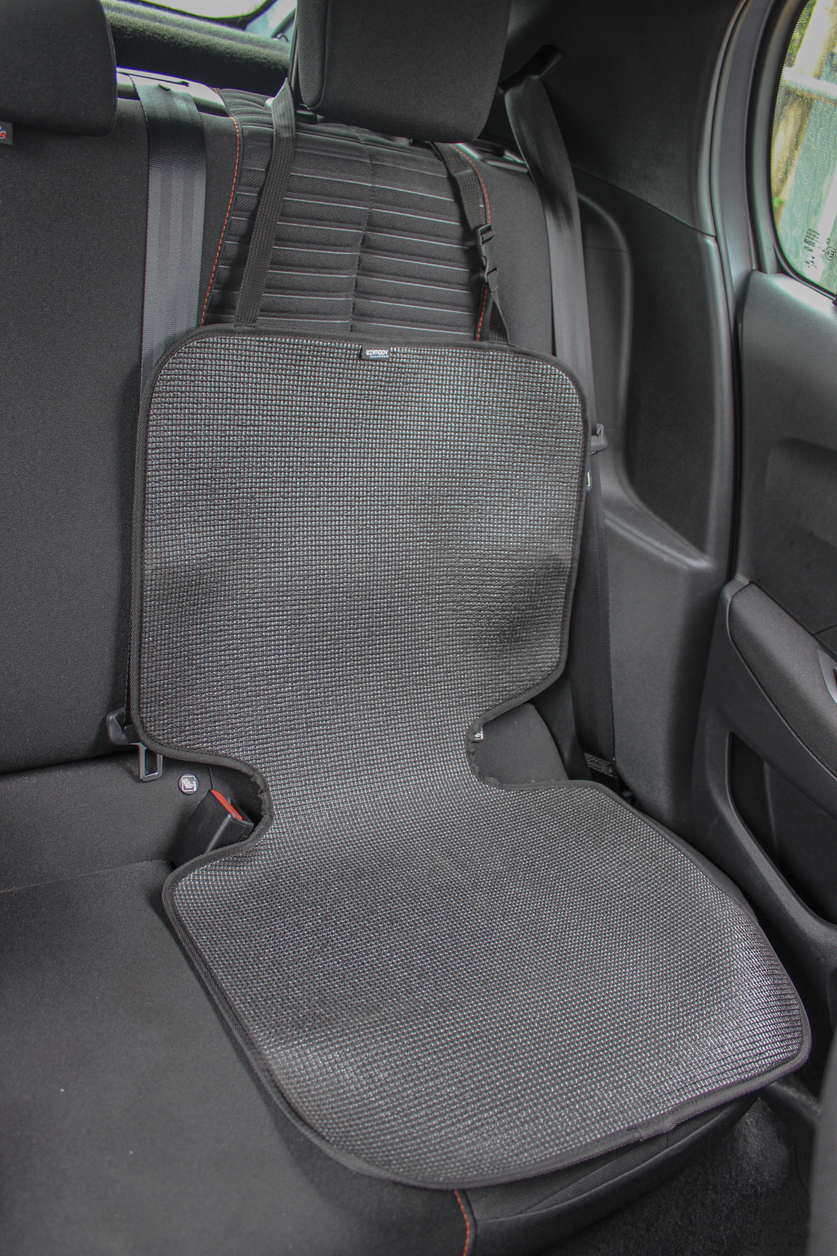 Dit anti-slip zitkussen met een gestructureerd oppervlak voorkomt dat het autostoeltje gaat schuiven. Het is eenvoudig te installeren, de verstelbare bandjes kunnen aan elke hoofdsteun worden bevestigd en passen in de meeste auto's.