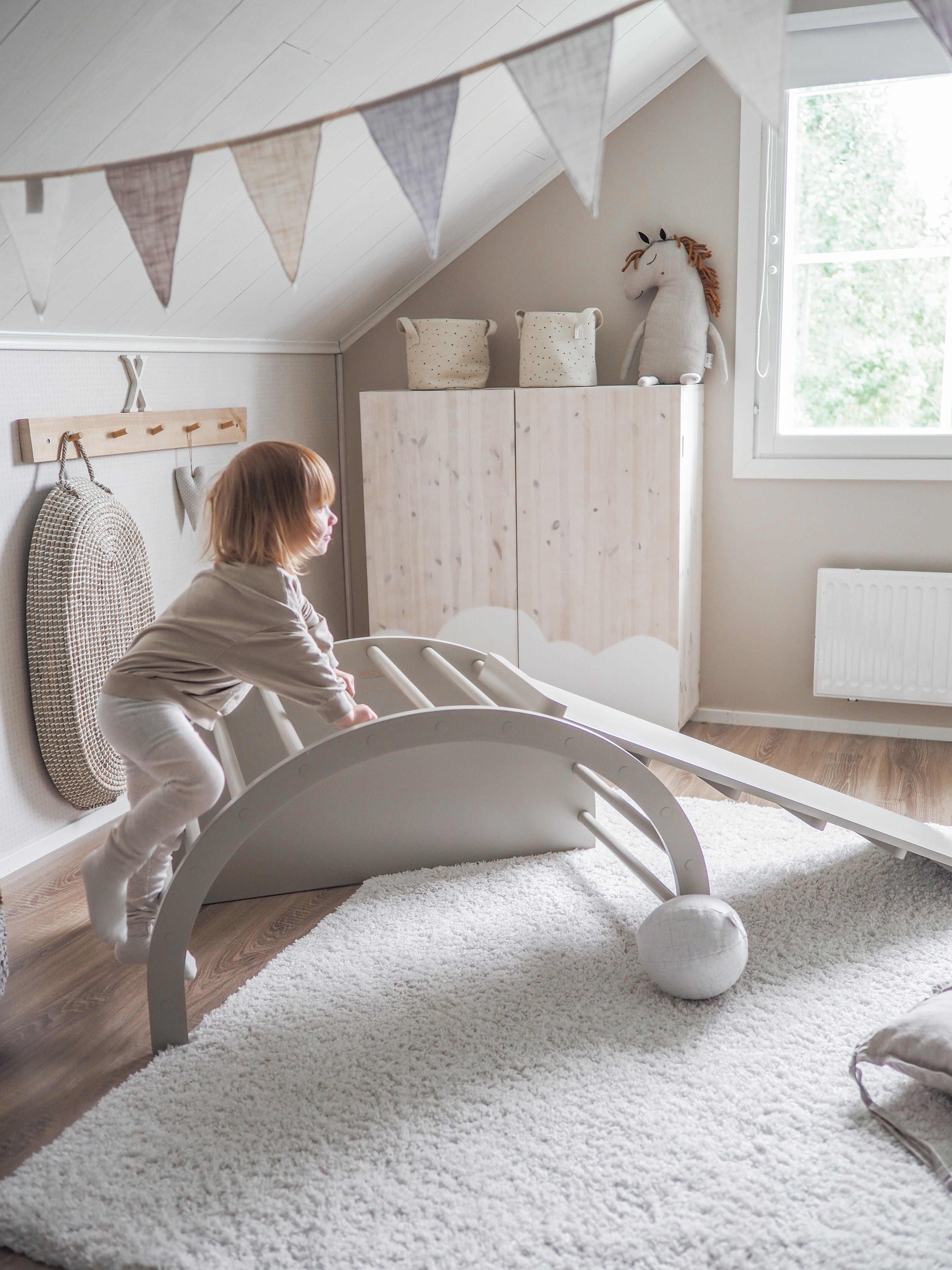 De Tuohi glijbaan is een multifunctioneel kindermeubel. Deze kan gecombineerd worden met de climbing arch van Fitwood als glijbaan. Jihaaa, glijden maar! Als je de Tuohi van Fitwood omdraait kan je hem gebruiken om te klimmen met de trapjes erop.