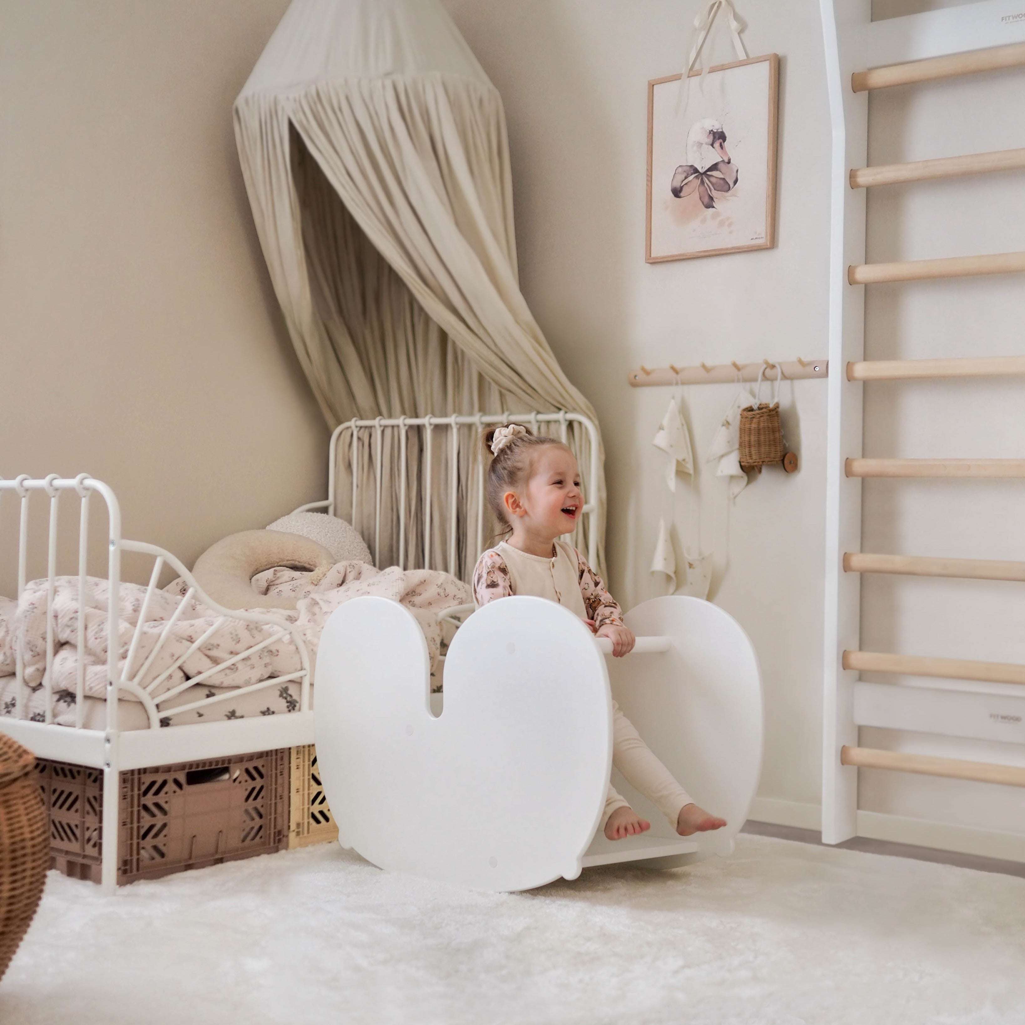 Als rocking horse bouwt NUPPU het zelfvertrouwen van kinderen op en ontwikkelt het hun lichaam controle door de regulering van de schommelende beweging en snelheid.