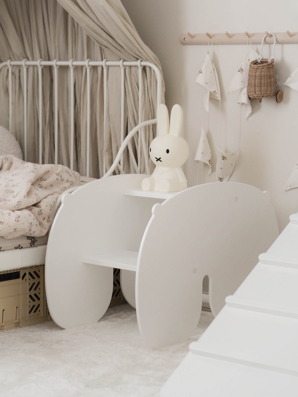 Draai je de NUPPU ondersteboven dan transformeer je het schommelpaard naar een klein bureautje met een bankje. Het kan ook dienen als kindermeubel nachtkastje. We love it!
