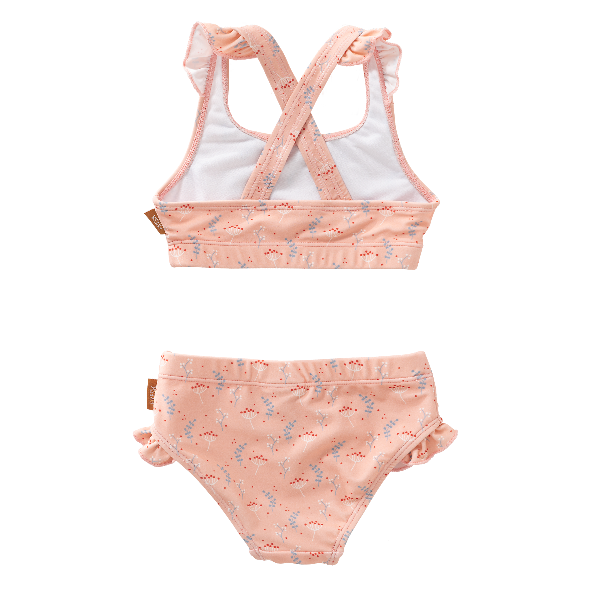De bikini is gemaakt van gerecycled polyester met elastaan, wat niet alleen duurzaam is, maar ook zorgt voor een comfortabele, zachte pasvorm. De stof is sneldrogend en ademend, ideaal voor kids die non-stop in en uit het water springen.