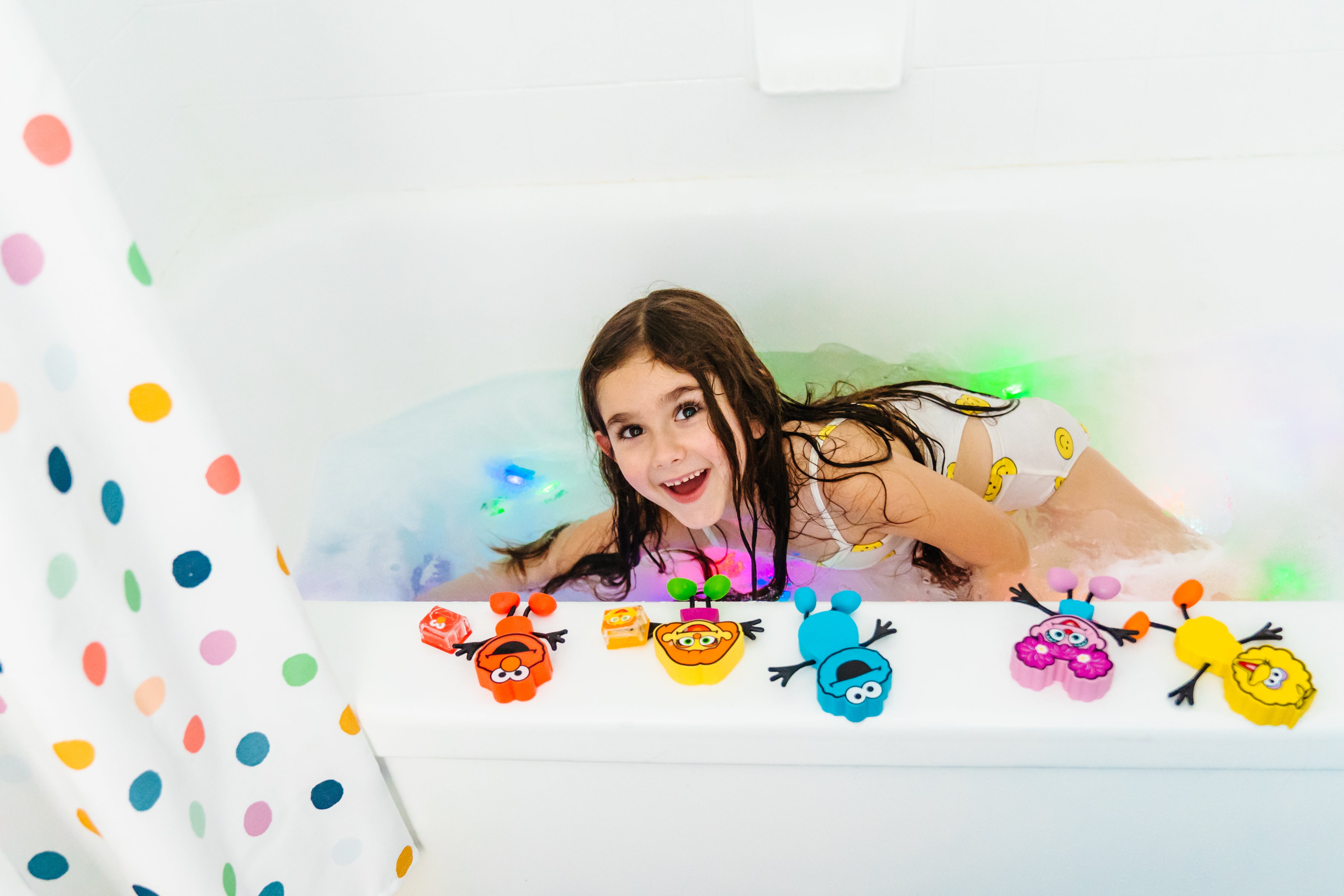 De kindjes spelen graag met hun lichtjes in bad of in de wasbak. Het is plezant, stimuleert hun fantasiewereldje en is ook gewoon heel gezellig.
