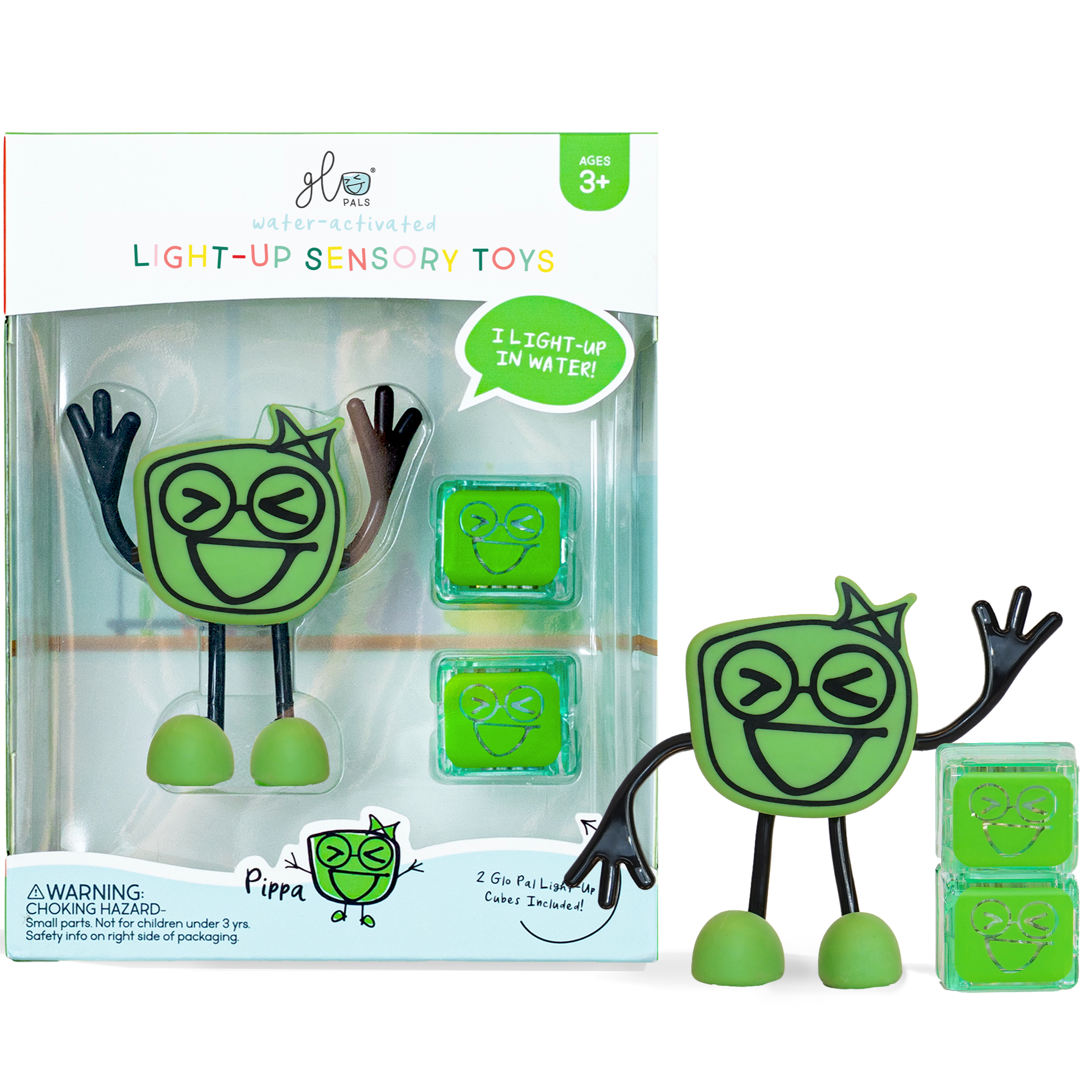 In bad gaan was nog nooit zo leuk met deze coole lichtgevende Glo Pals figuurtjes! Doe het blokje in het figuurtje, gooi in het water en het figuurtje geeft meteen licht! Voor een extra cool effect kan je het licht in de badkamer dimmen of uitdoen. Zo kunnen je kids in het donker spelen met het lichtgevend figuurtje. Extra leuk is om verschillende cubes en figuurtjes in het water te gooien! Zo krijgt het water verschillende kleuren!