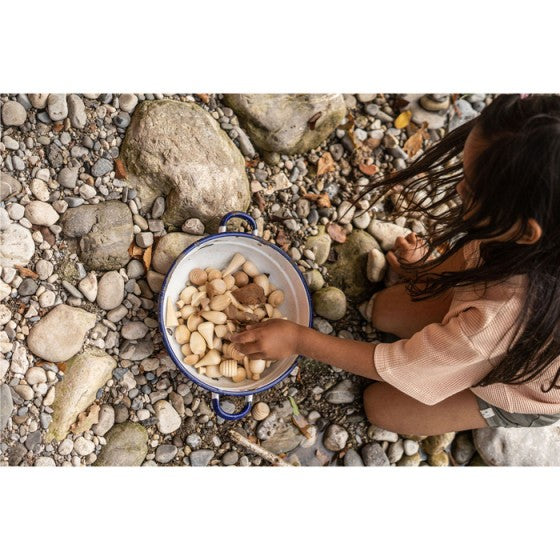 Deze prachtige collectie omvat 120 stuks houten speelgoed in 10 verschillende vormen. Alles zit samen in een stoffen zak. Aanbevolen voor kinderen vanaf 3 jaar.