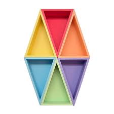 De mandigo driehoek bakjes zijn ontworpen om materialen overzichtelijk te sorteren tijdens sensorisch spel. Elk bakje heeft dezelfde vorm en kan eenvoudig gecombineerd worden met andere kleuren. Ze zijn verkrijgbaar in zowel regenboog- als pasteltinten, zodat je precies het kleurenpalet kunt kiezen dat past bij jouw speelhoek of thema.