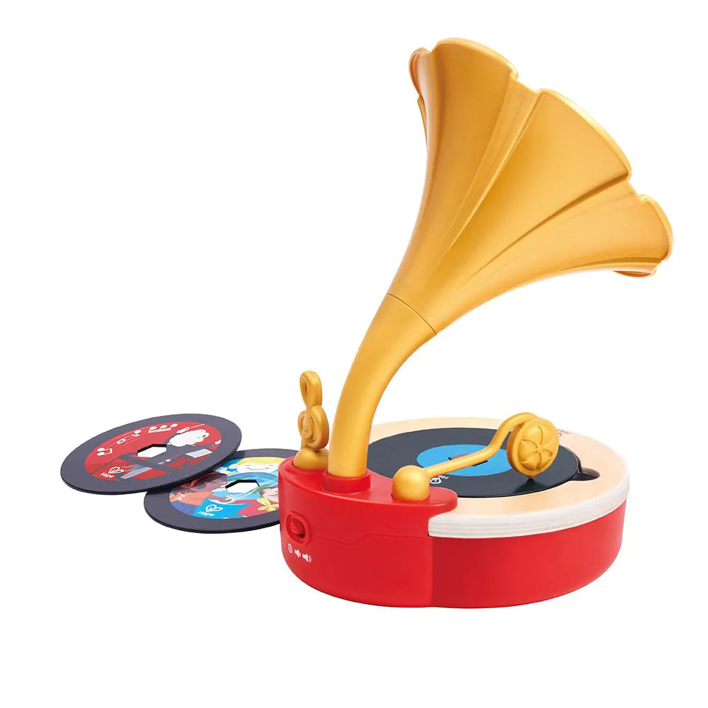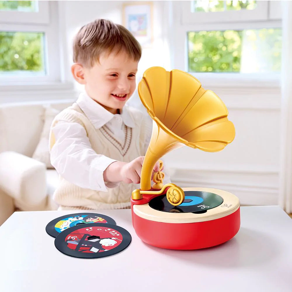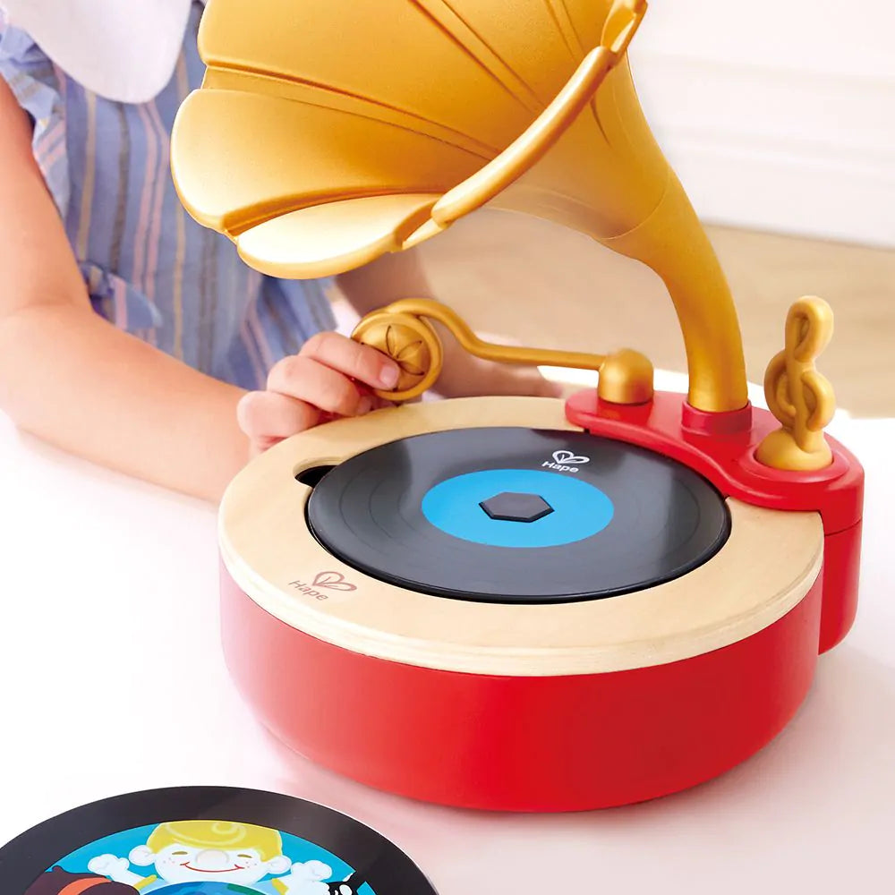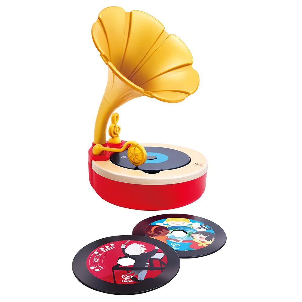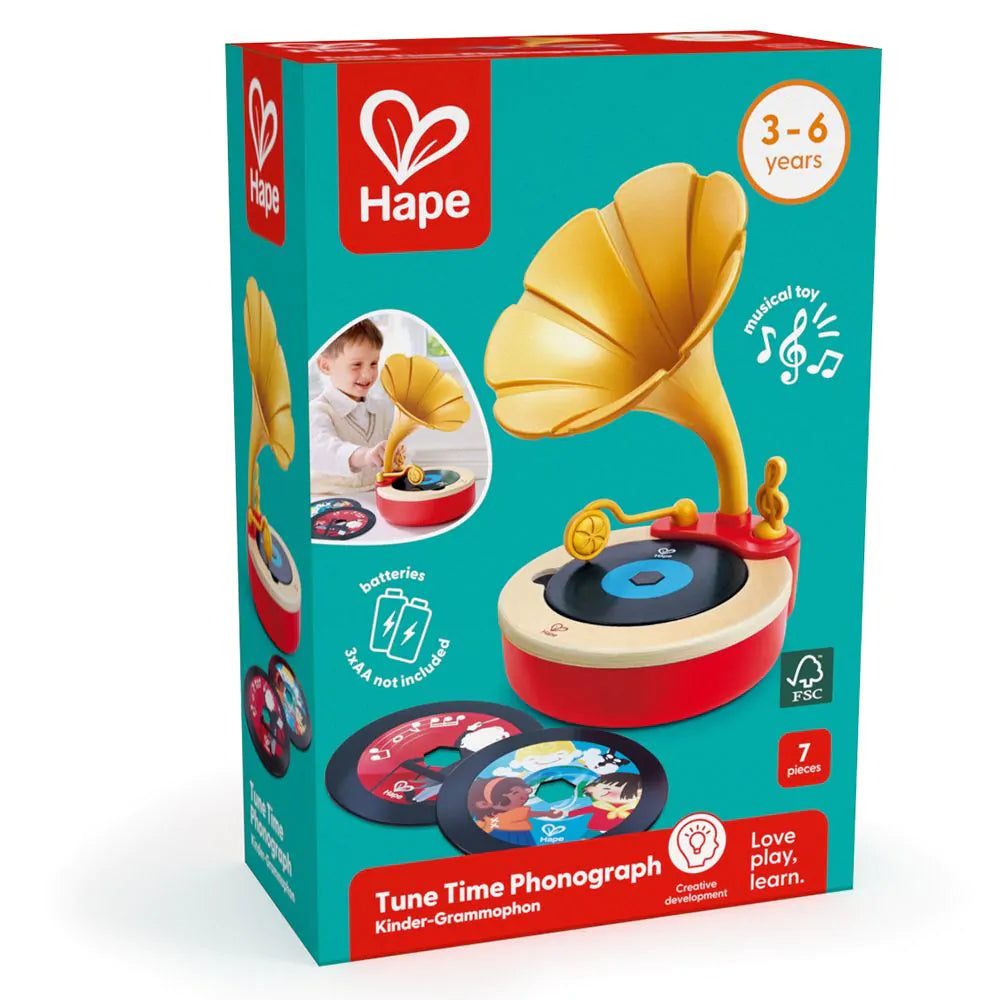 De Hape Tune Time Phonograph is een betoverende muziekdoos die kinderen op speelse wijze kennis laat maken met traditionele melodieën. Door eenvoudig verschillende schijven in te voegen, kunnen kinderen genieten van diverse deuntjes, wat het een perfect middelpunt maakt voor feestelijke gelegenheden.