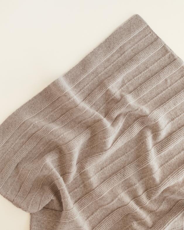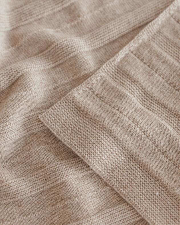 Deken Holly in de kleur Sand van Hvid. Dit dikke deken houdt je baby'tje warm tijdens koude dagen. Het is gemaakt uit zachte merino lamswol. Er zit een mooi streepjespatroon in de breisteek.