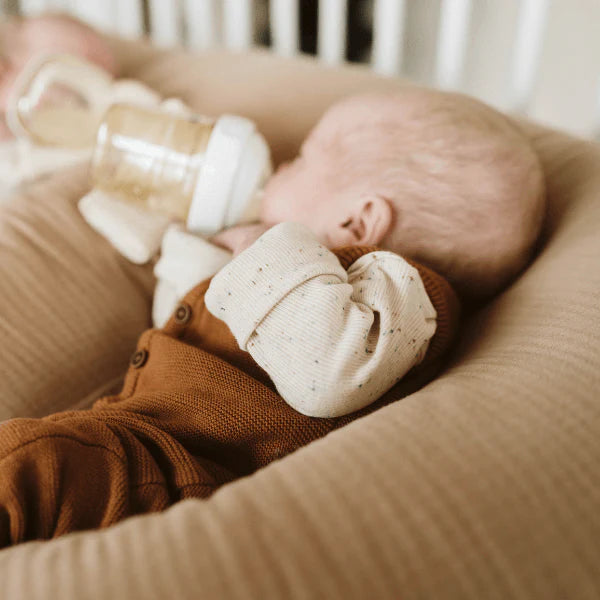 Het voedingskussen is gemaakt van katoen, superzacht en luchtdoorlatend. De vulling van microparels houdt het kussen in optimale vorm en biedt perfecte ondersteuning. De buitenhoes van het voedingskussen is gemakkelijk afneembaar dankzij de extra lange ritssluiting en kan zo in de was.
