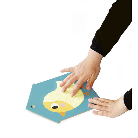 Ga op ontdekking met deze leuke tactiele kaarten! Je kleintje zal door te voelen de wereld verkennen. Deze set bevat 7 kaarten die door een verwijderbare ring samengehouden kunnen worden om makkelijk overal mee naartoe te nemen! Met de boerderij kaart met opening aan de voorkant kan je kleintje kiekeboe spelen met alle dieren.