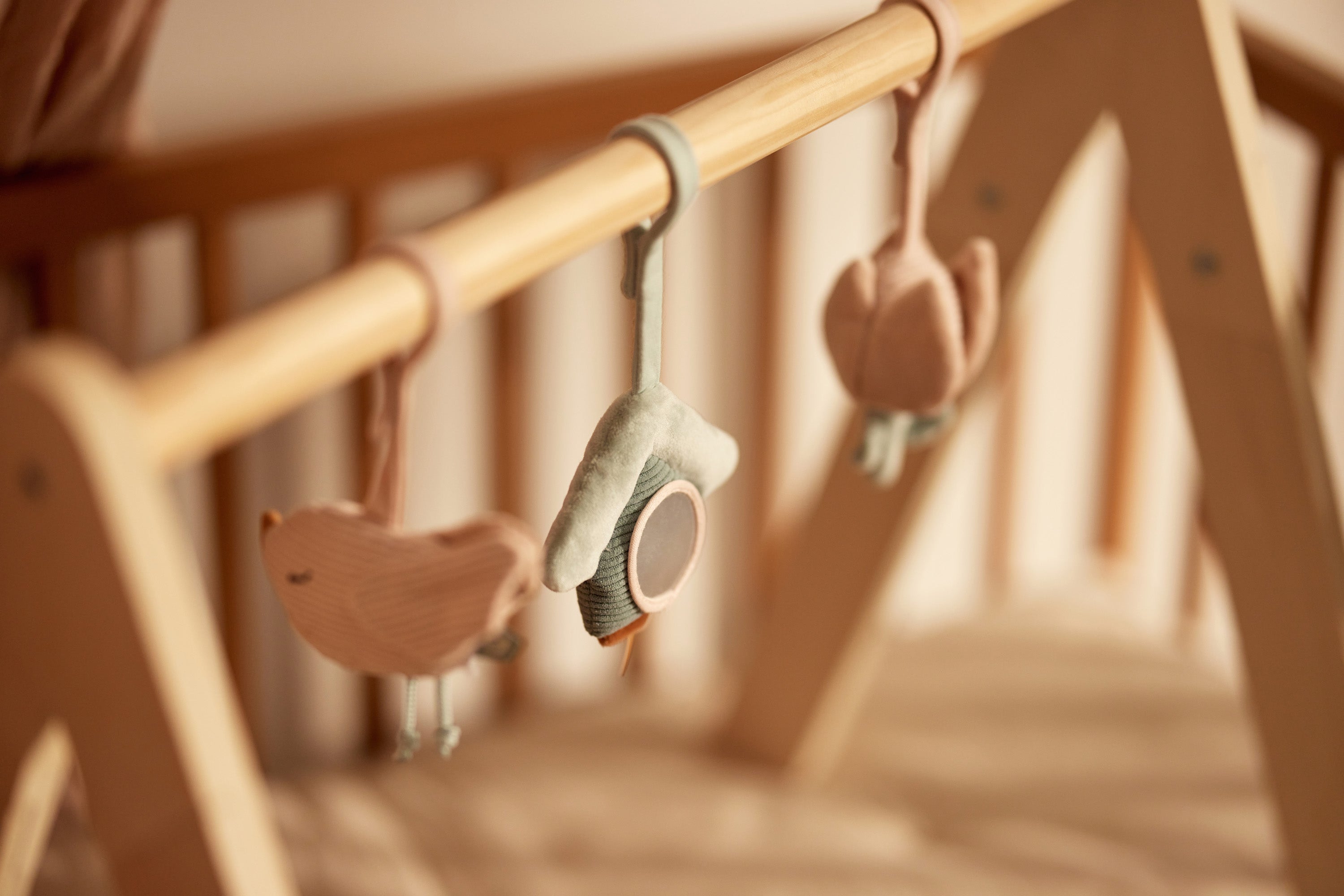 Deze speelfiguurtjes zijn geschikt voor gebruik in combinatie met de Jollein houten babygym. Het is van zachte teddystof. Vanaf ongeveer 10 weken krijgt je baby steeds meer behoefte aan prikkels, spelen en rondkijken. Dat is het moment dat een babygym die extra uitdaging biedt.