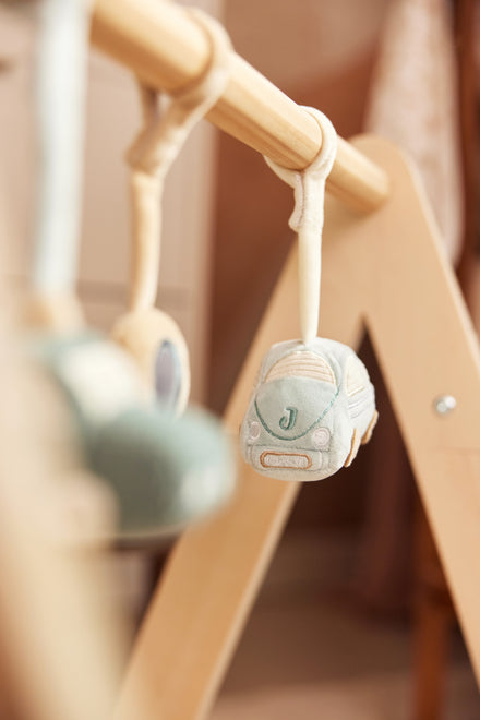 Deze speelfiguurtjes zijn geschikt voor gebruik in combinatie met de Jollein houten babygym. Het is van zachte teddystof. Vanaf ongeveer 10 weken krijgt je baby steeds meer behoefte aan prikkels, spelen en rondkijken. Dat is het moment dat een babygym die extra uitdaging biedt.