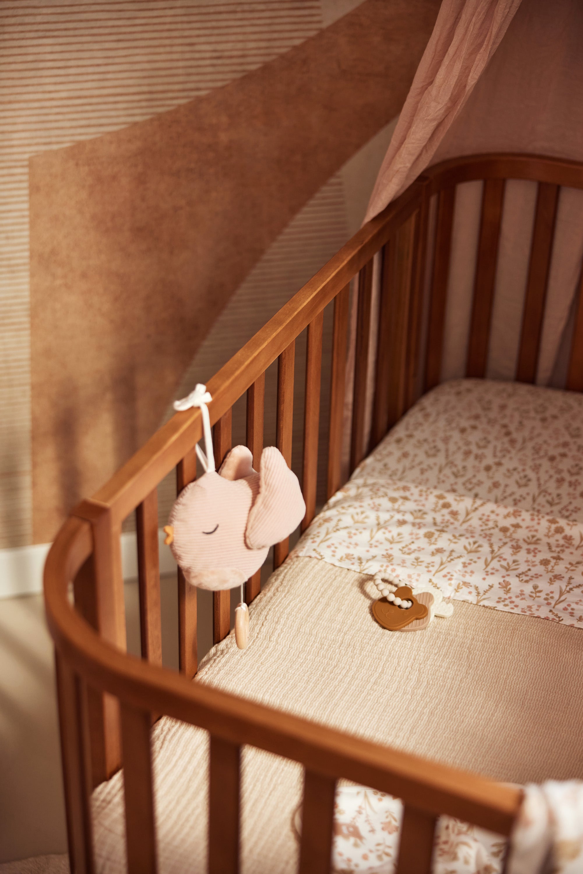 Leuke muziekhanger met mooie melodietjes als je aan het touwtje trekt. Dit werkt rustgevend voor je baby. Je matcht deze muziekhanger goed met de leuke speendoekjes en andere speelgoed uit de Jollein collectie!