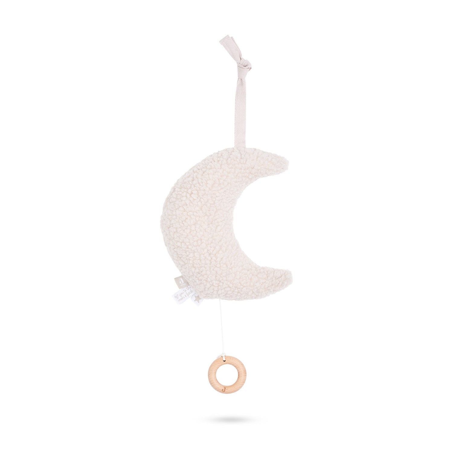 Trek maar aan het touwtje en de maan zingt een slaapliedje. Een muziekje kan rustgevend werken voor een baby. Het maantje heeft een trekkoord met houten ringetje en aan de bovenkant zit een touwtje om de muziekhanger zo op te hangen dat je baby de maan wel kan zien en horen maar het niet kan grijpen. Het liedje 'you are my sunshine' duurt per keer ongeveer 60 seconden; vast lang genoeg om jouw baby in slaap te krijgen. Als je het elke dag herhaalt, wordt het een slaapritueel en daarmee een herkenning om te gaan slapen.