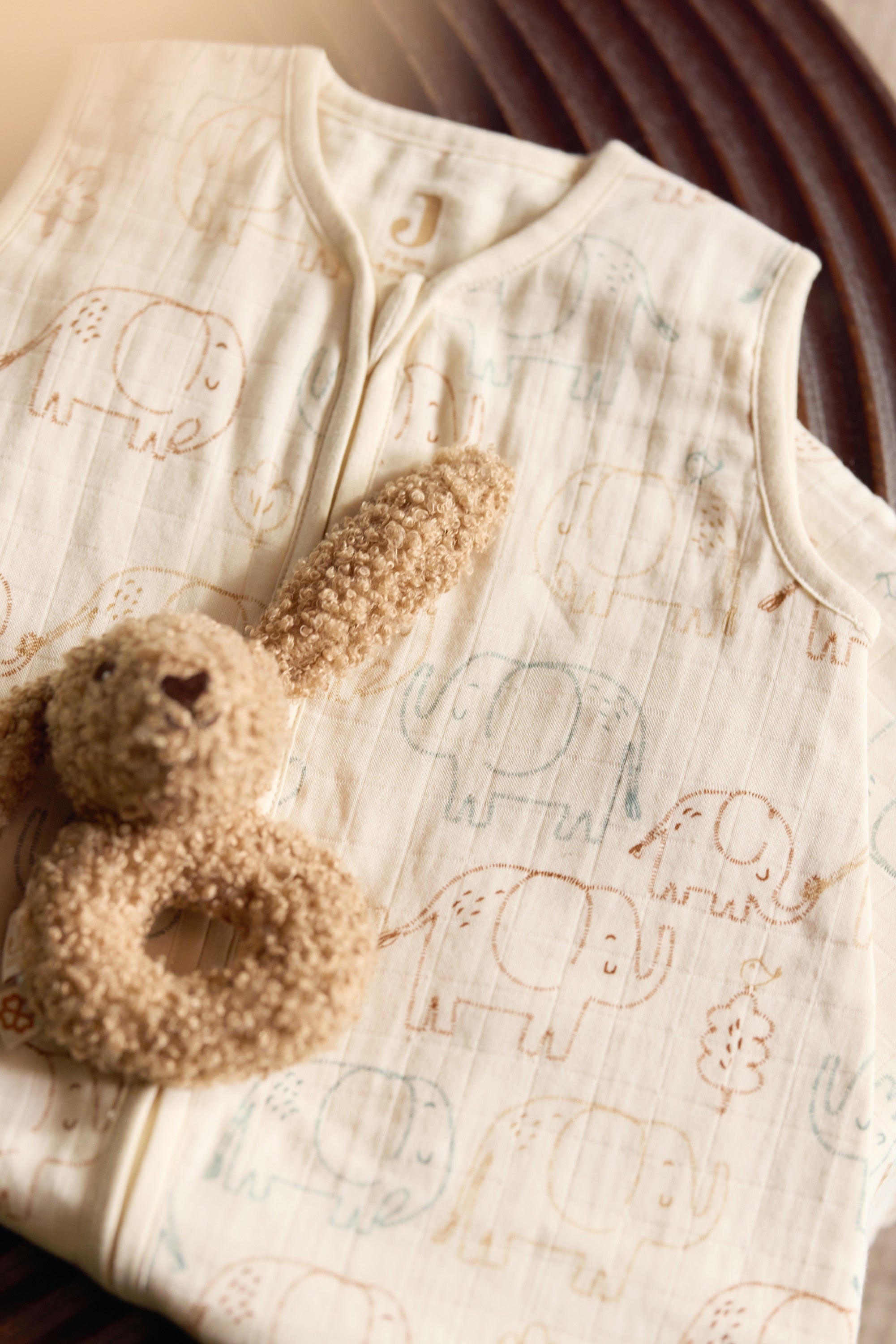 De slaapzak is voorzien van een veilige, soepele rits waarmee verschonen extra makkelijk wordt. Licht, ademend en zacht — ideaal voor een rustige en veilige slaap.