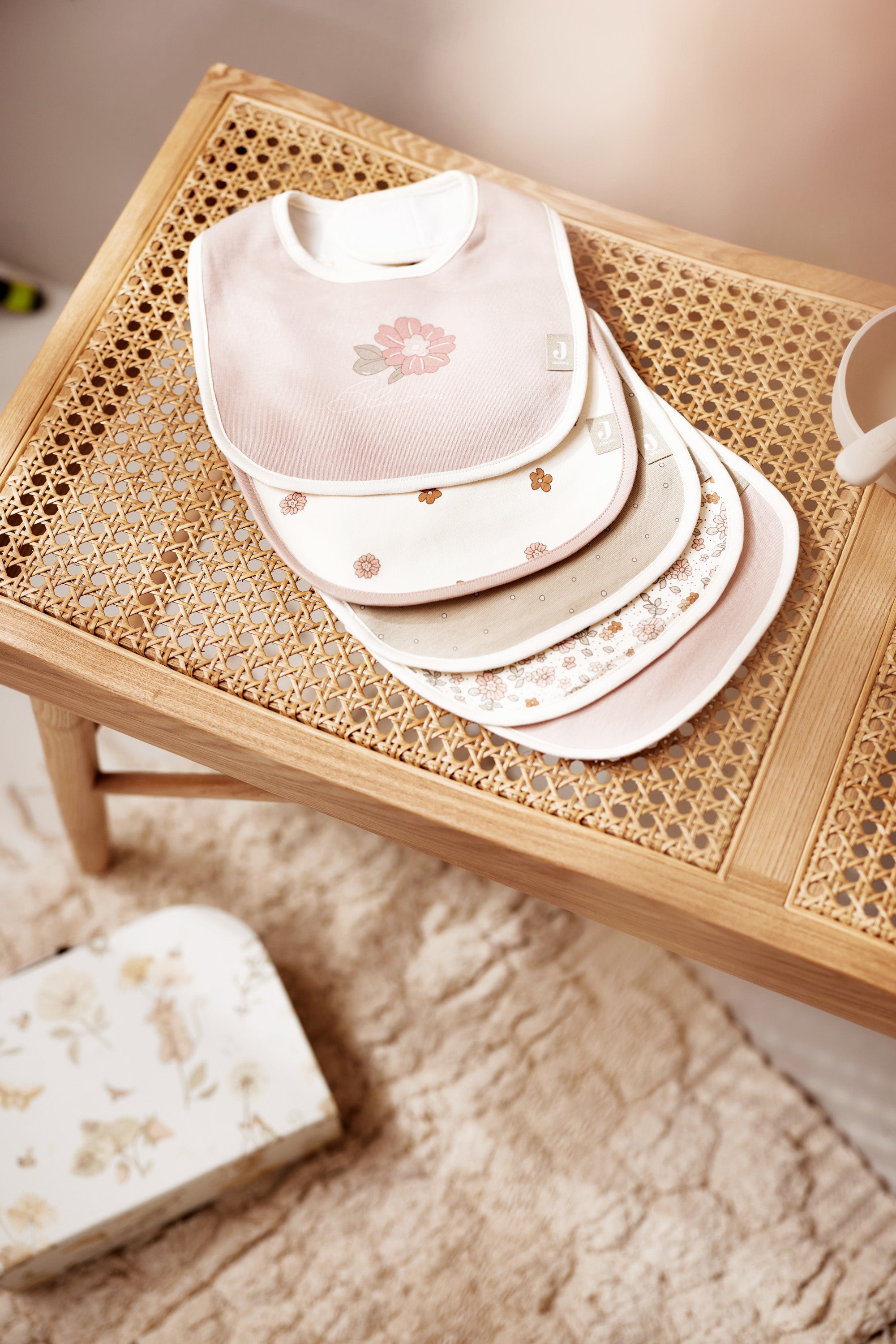 Leuke set van vijf slabben van Jollein. Laat je kindje maar smossen nu, de slabben van Jollein vangen het op!