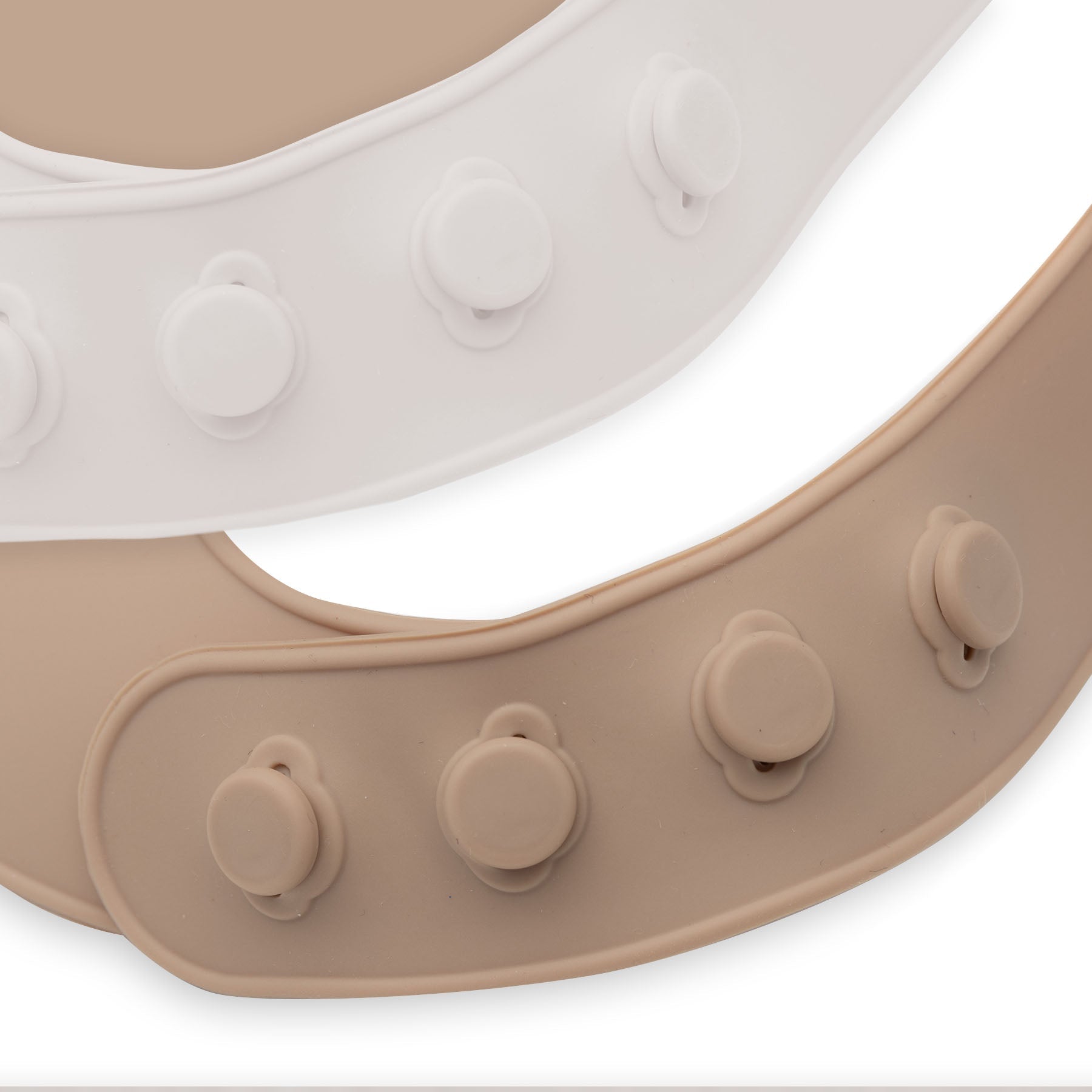 Beide slabbetjes zijn gemaakt van flexibel, makkelijk schoon te maken siliconen, zodat ze ideaal zijn voor dagelijks gebruik en het bewaren van een schone babyoutfit.