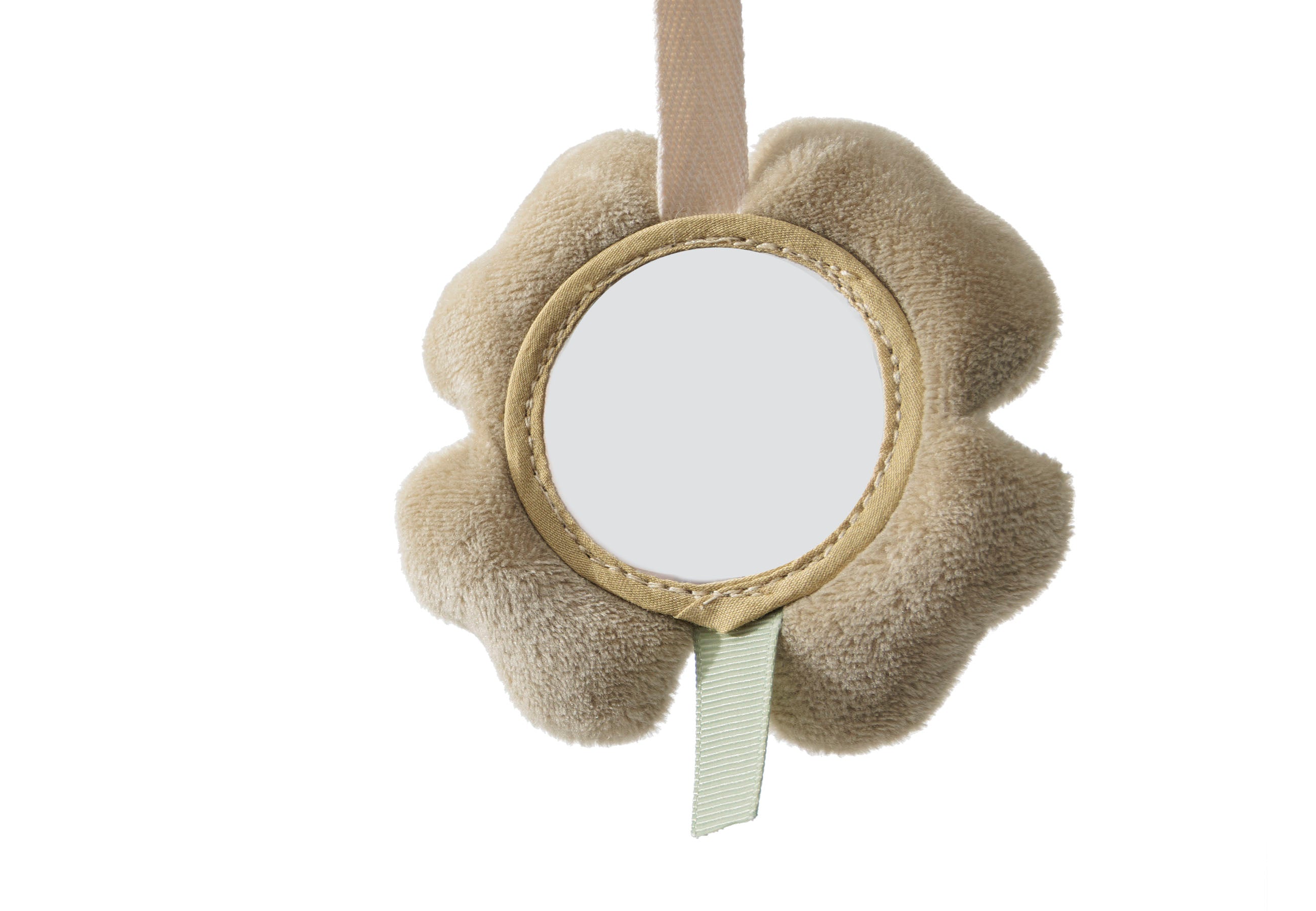 Het ontwerp bevat een schattig hondje, een katje en een klavertje vier, waarbij het klavertje een klein spiegeltje heeft voor extra vermaak.