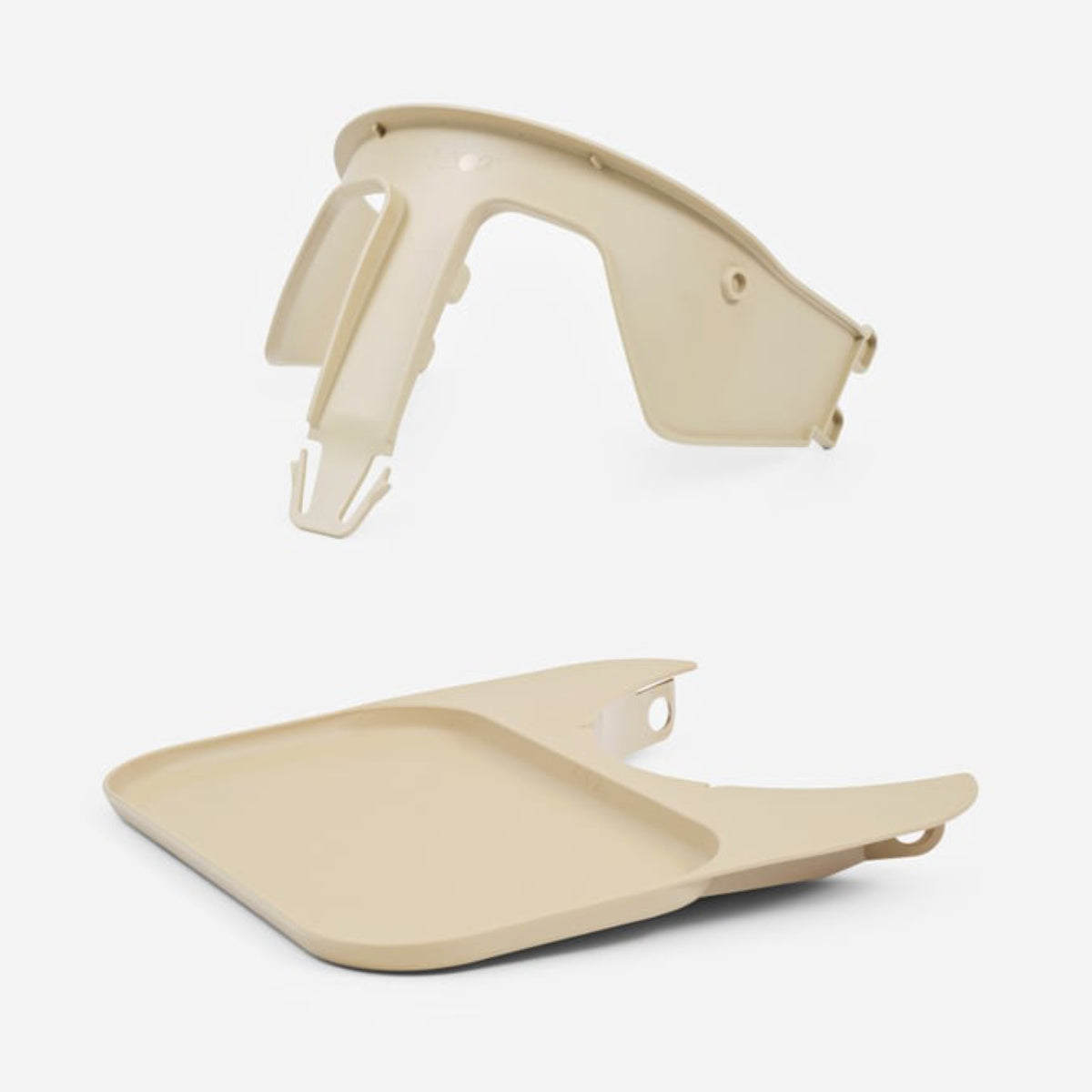 De Safety Rail is gemaakt van 100% gerecycled plastic, stevig en duurzaam geproduceerd volgens de nieuwste veiligheidseisen. Het Tray is vervaardigd uit 100% kunststof, waardoor het niet alleen licht en robuust is, maar ook gemakkelijk schoon te maken. Na het eten kan het gewoon met een doekje worden afgenomen of zelfs in de vaatwasser op 40°C — ideaal voor drukke gezinnen.