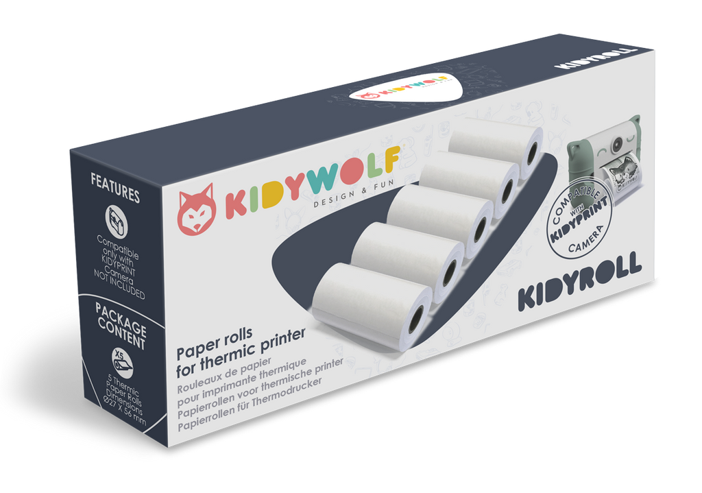 De thermische afdruktechnologie van Kidywolf zorgt voor veilig en milieuvriendelijk afdrukken. Zonder gebruik van inkt en toner. Deze rolletjes zijn navulrolletjes voor de Kidyprint van Kidywolf.